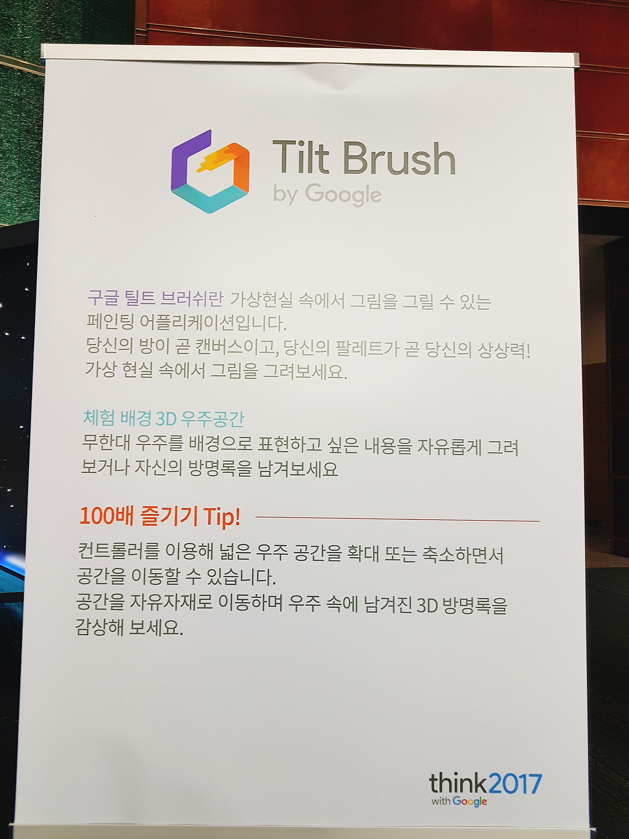 그런데 3층에서 구글에서 think2017도 진행되고 있었다. 쉬는 시간에 잠시 3층에 다녀온다. 사전등록은 못해서 행사장에는 못 들어갔지만 부스의 서비스들은 접했다.