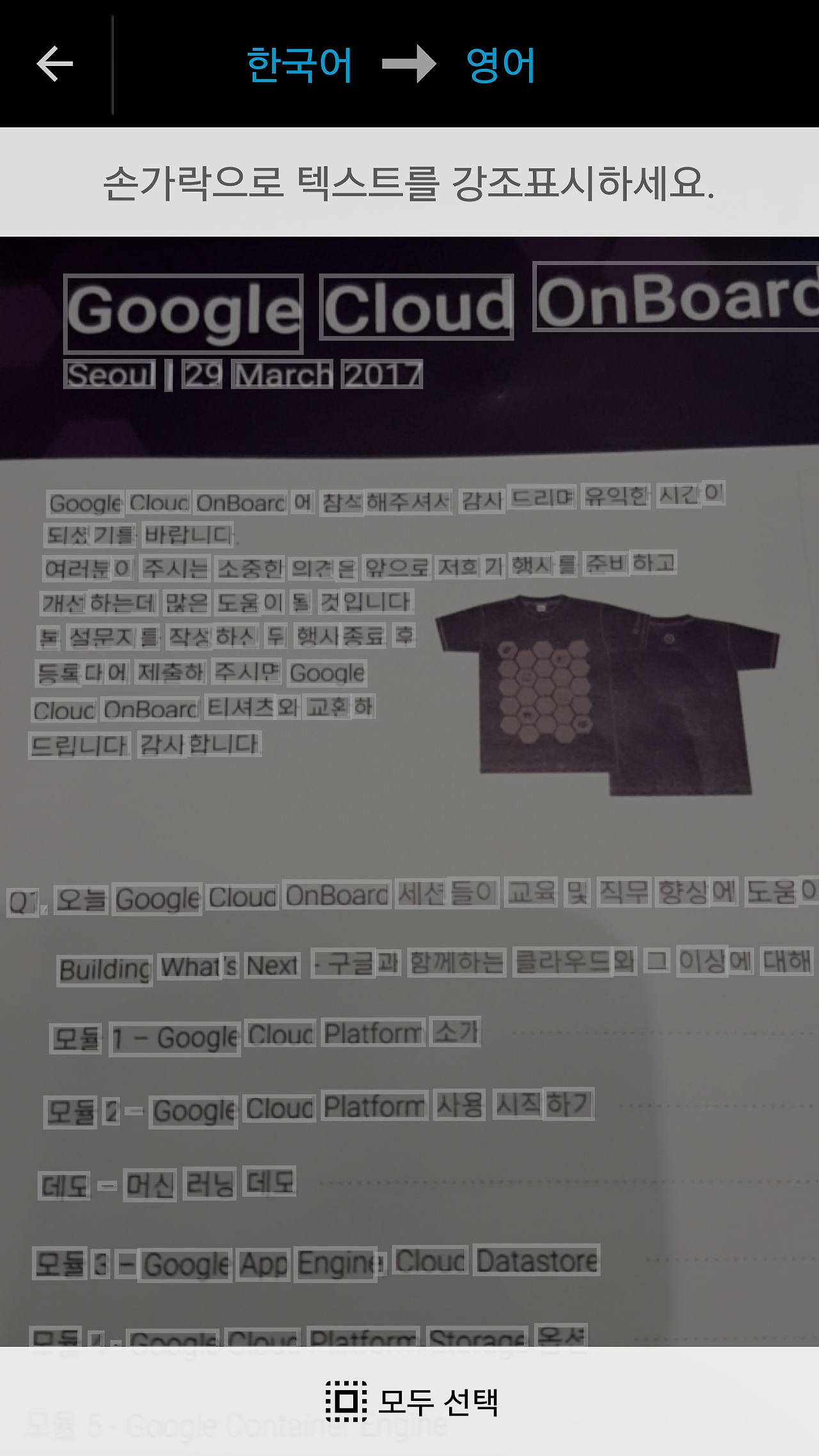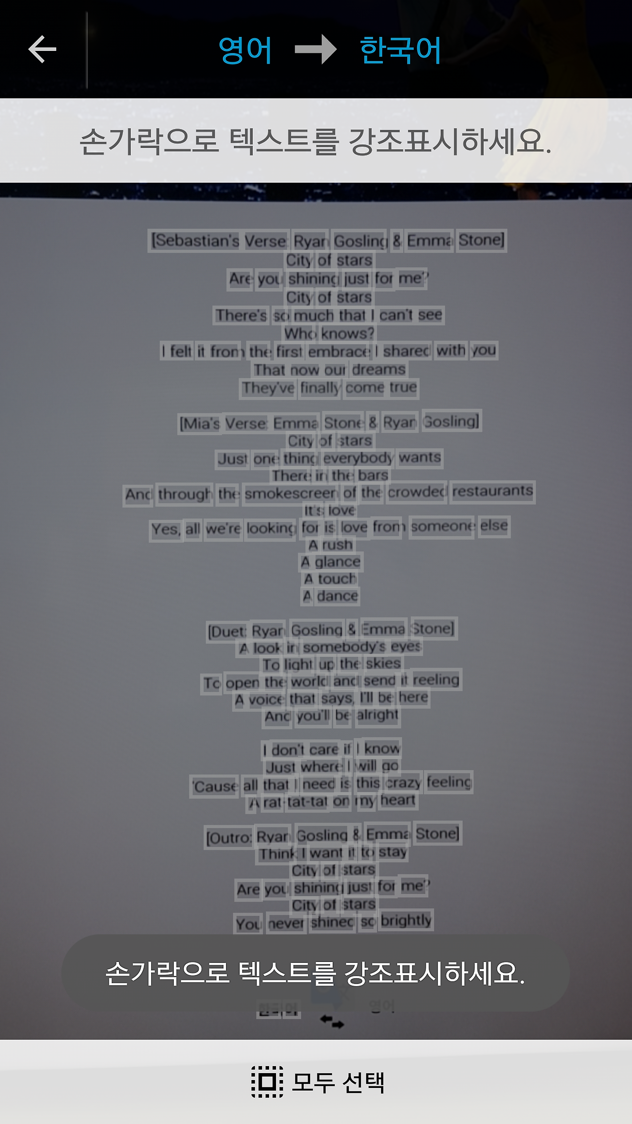 3.손가락으로 드래그하면 번역이 된다. 대박!!