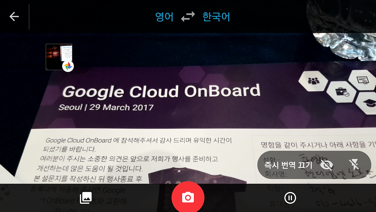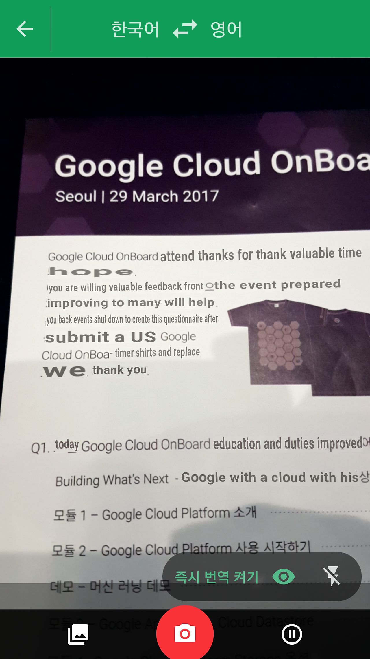 사진을 찍어서 내용을 인식하여 번역하는 기능이 강화되었다.