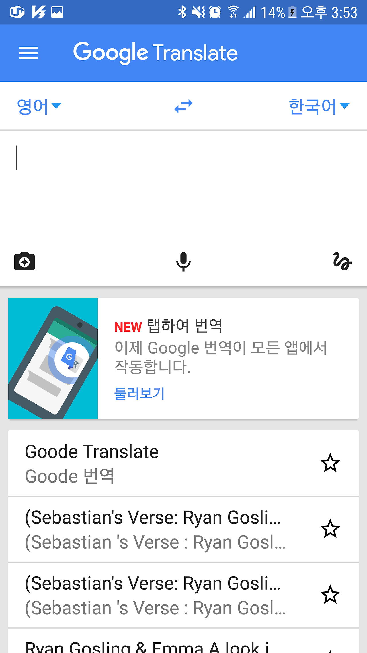 오늘날짜(3/29) 14시부터 구글 번역기가 업데이트가 되었다고 한다.