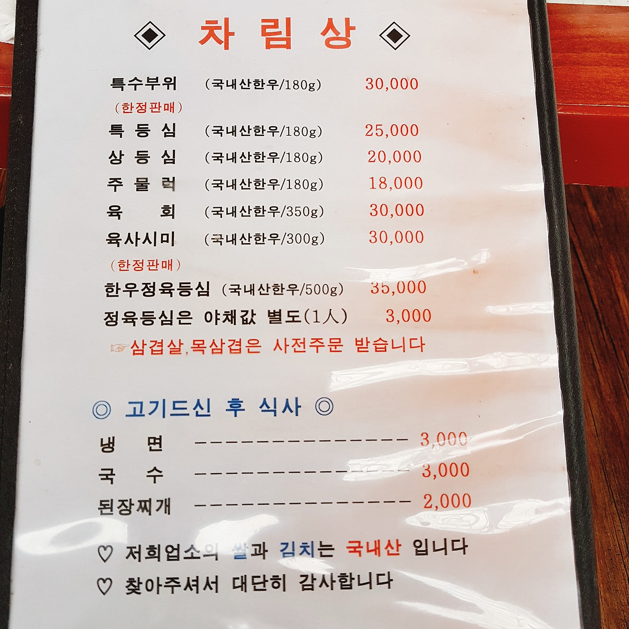 예전에는 한달에 3번 소를 잡는다고 했는데, 요새는 2번이라고 한다. 예전 구정때 포장해 간 기억도 있었다.
