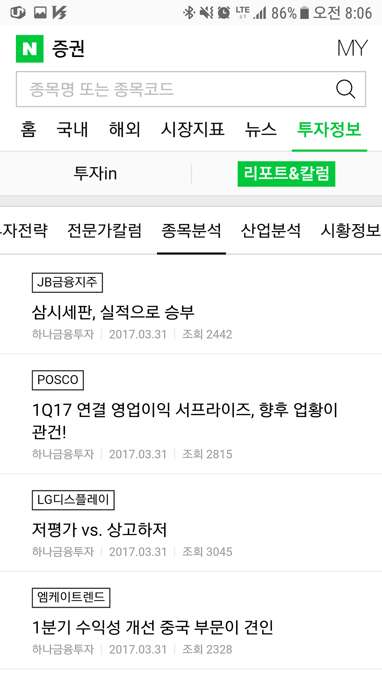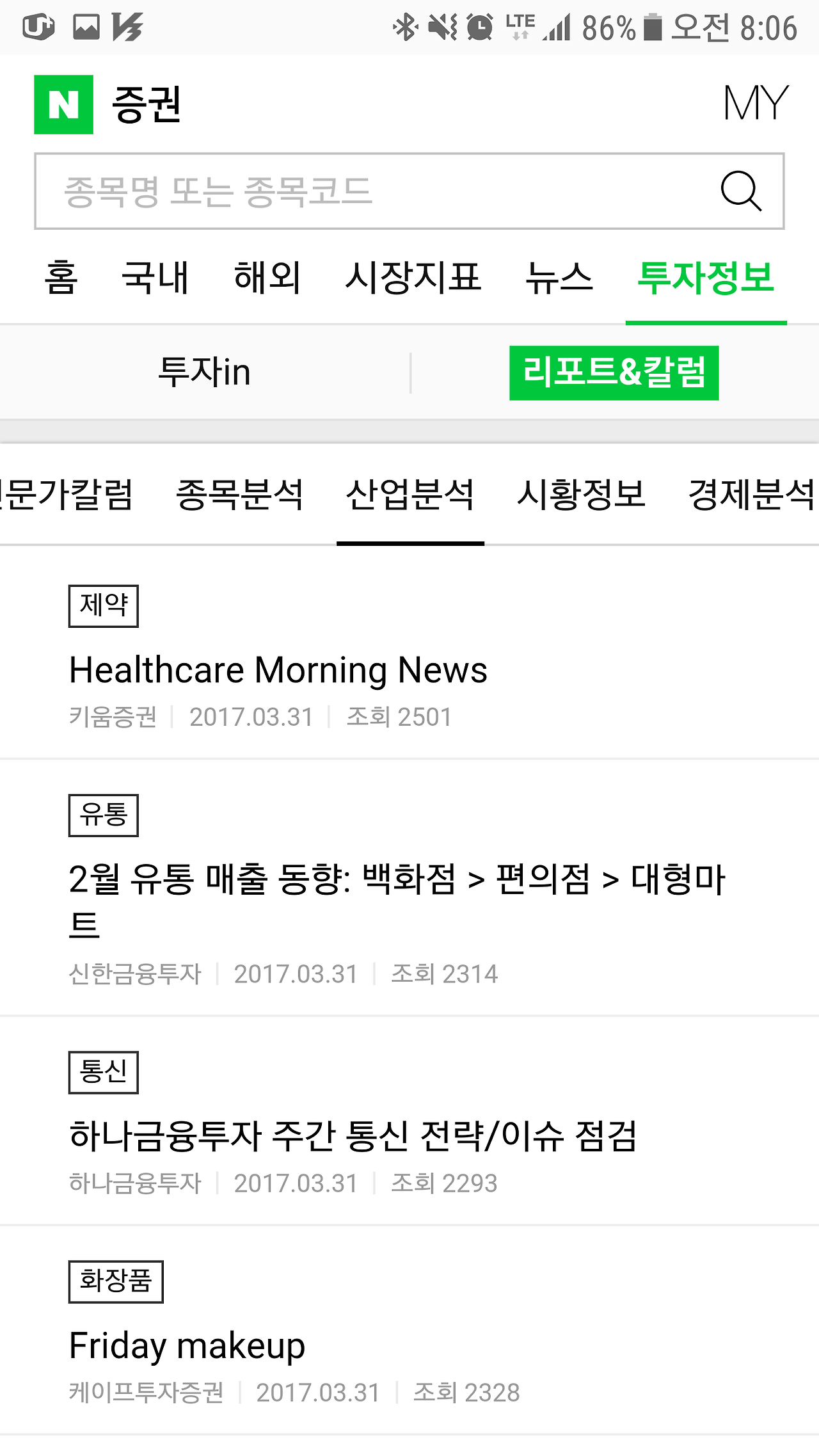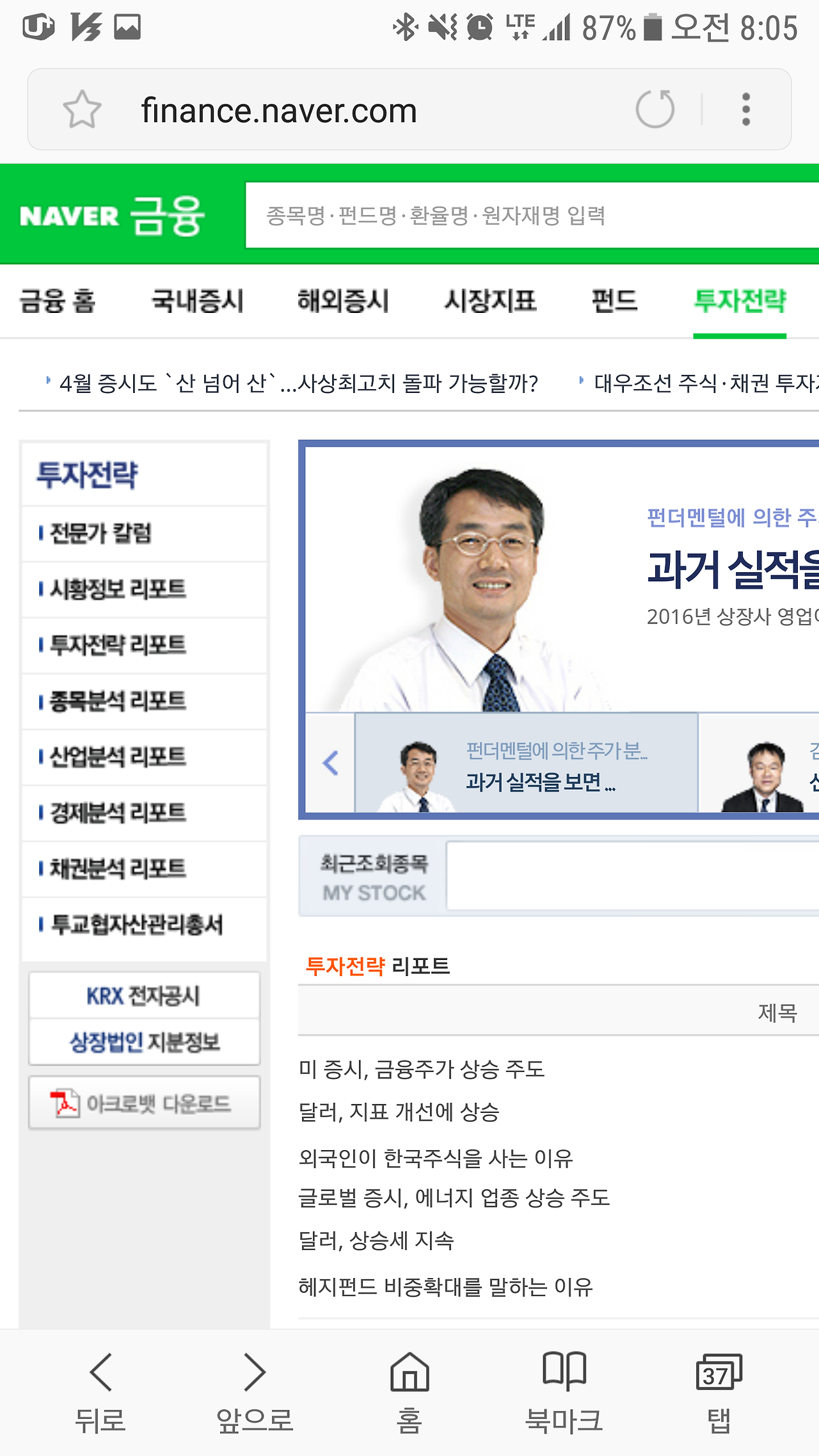 네이버 금융이나 증권에 들어가서 투자전략에서 주로 종목분석, 산업분석을 활용하게 된다.
