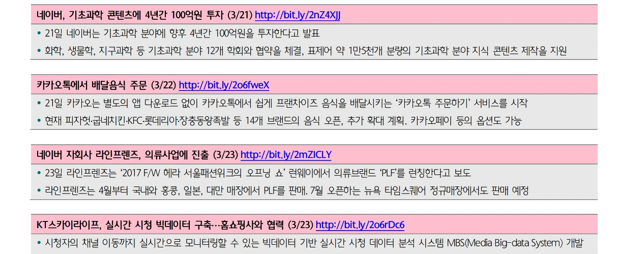 주간마다 동향이 정리된다. 이슈라고 할 수도 있다. 새로운 서비스나 업계 전망이다. 기사들도 써머리된다.