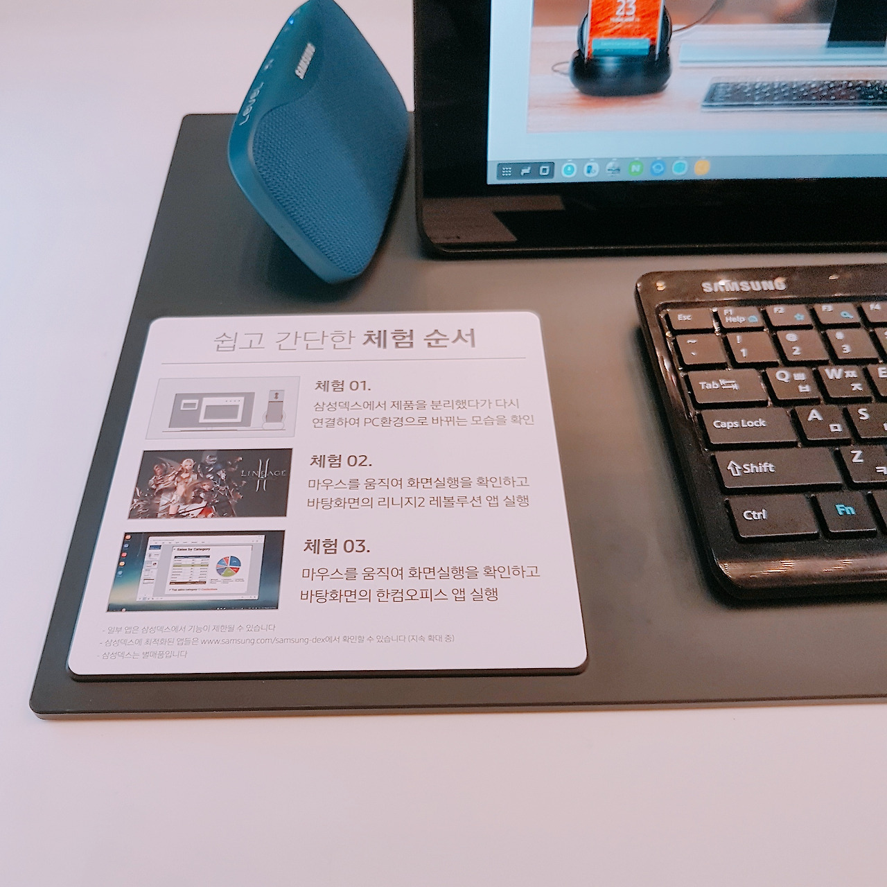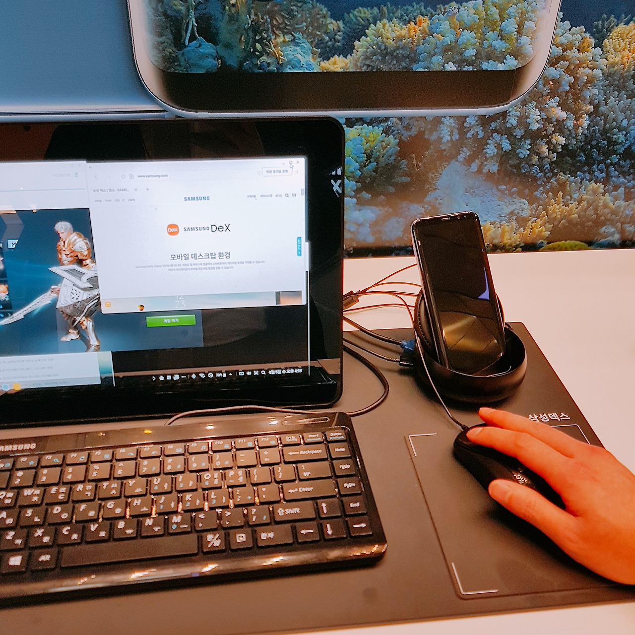 Dex로 충전과 핸드폰을 노트북처럼 쓴다.