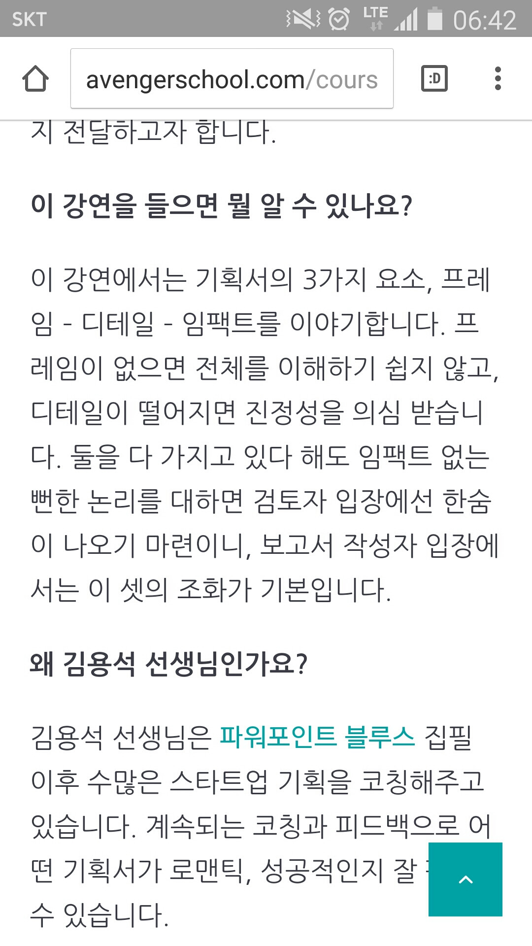 "파워포인트블루스" 책 저자로도 유명하지만, 파워포인트 강의라는 접근보다는 기획/설득이라는 강의에 더 적정하다고 볼 수 있다.