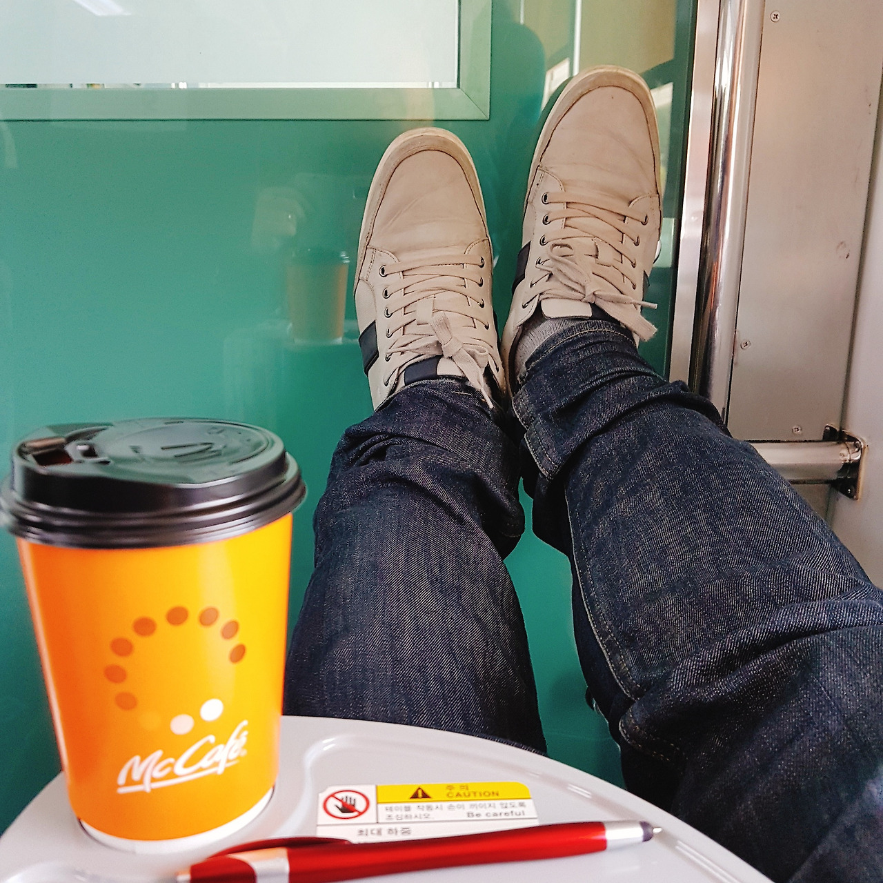 커피한잔과 메모할 수 있는 종이와 펜 그렇게 기차여행이다.