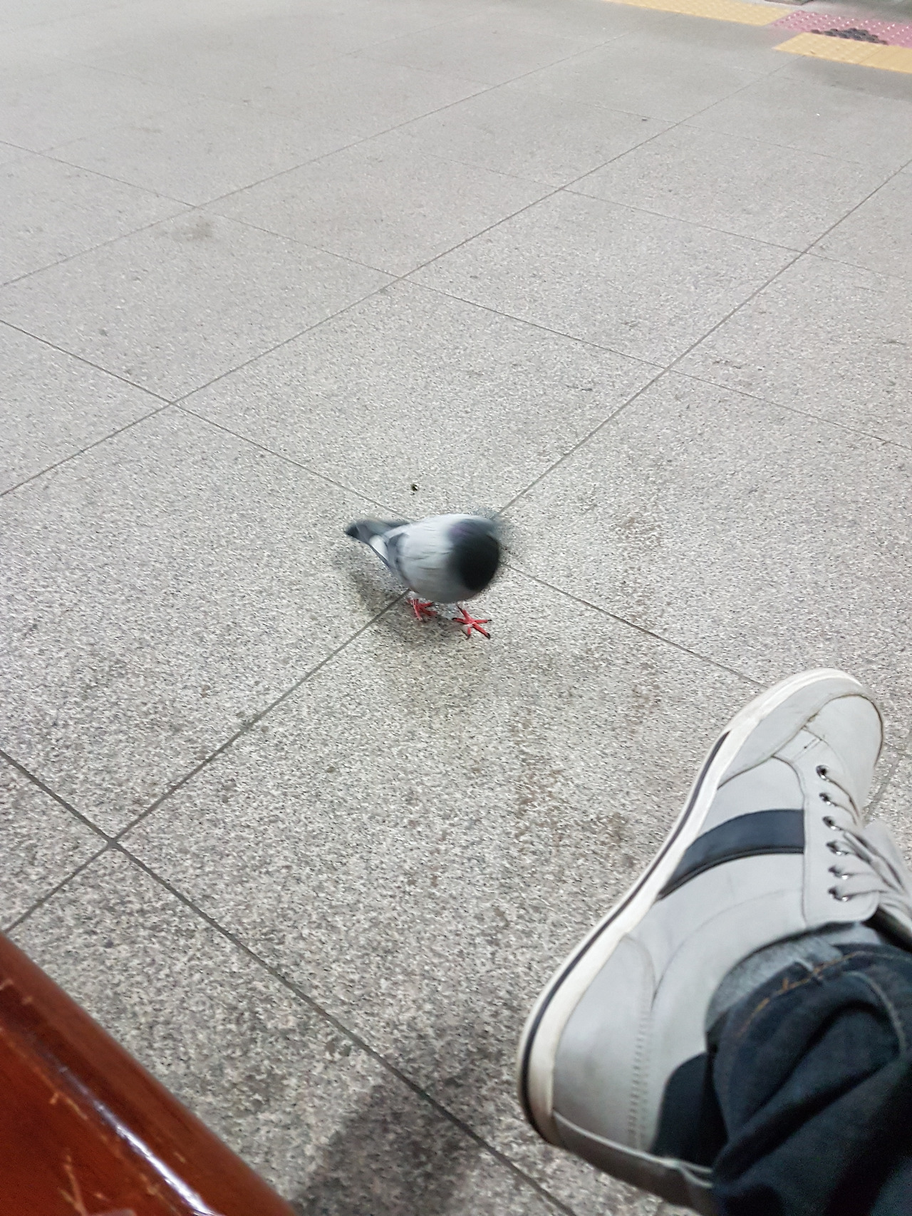 청량리역에 동물원 동물처럼 사람이 익숙한 비둘기