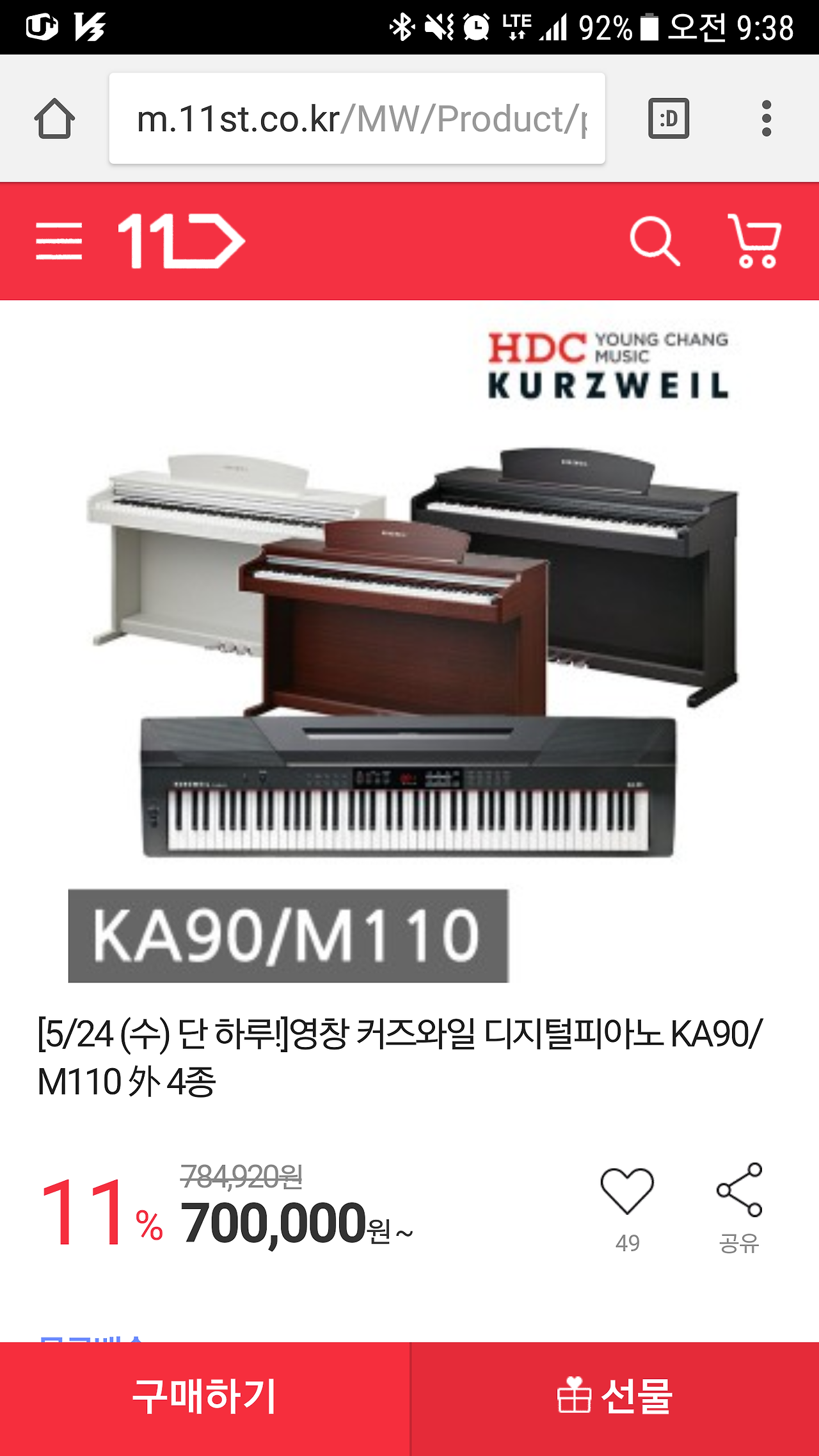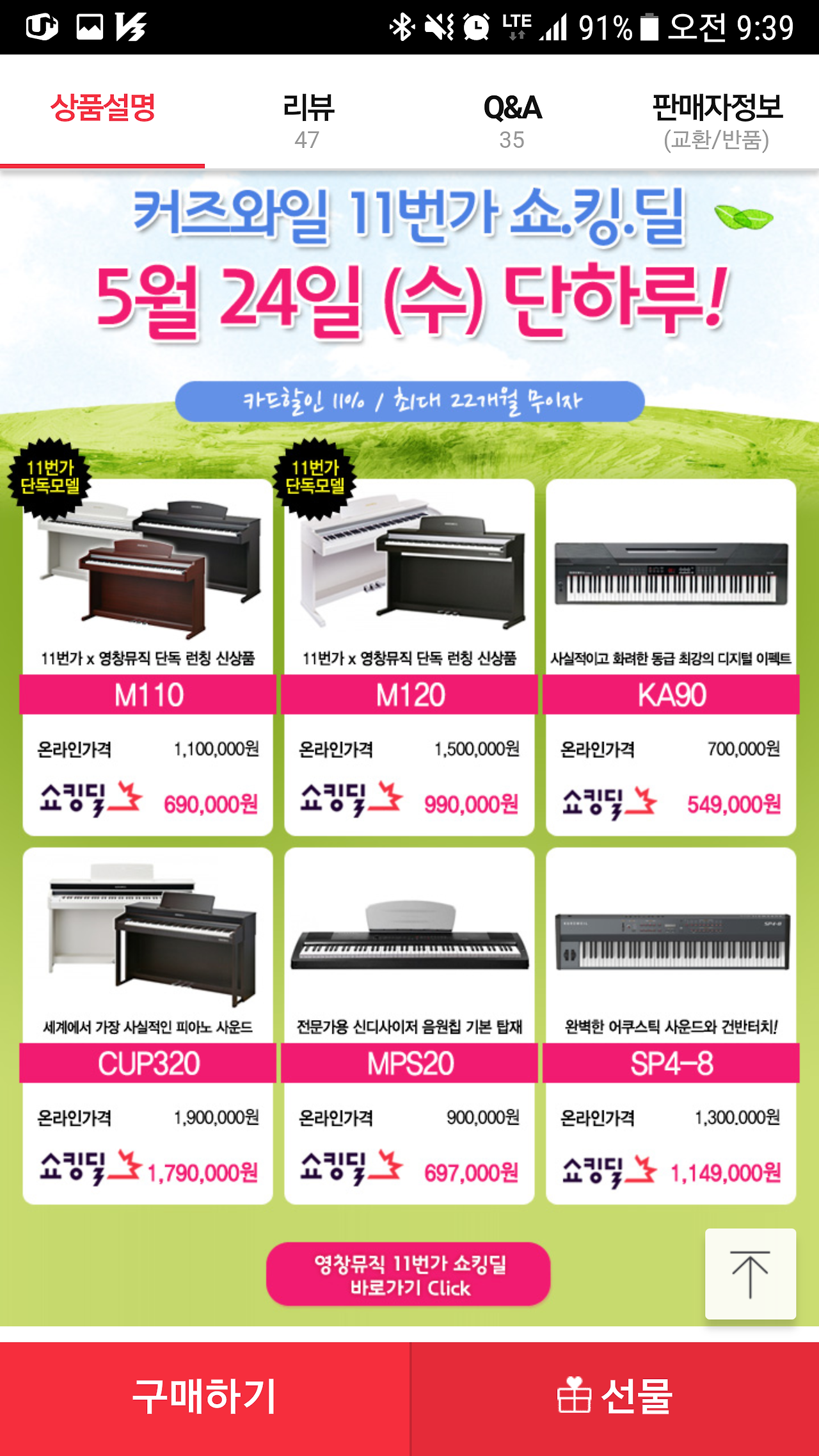 #11번가#쇼킹딜#이벤트#단하루#영창뮤직#커즈와일"