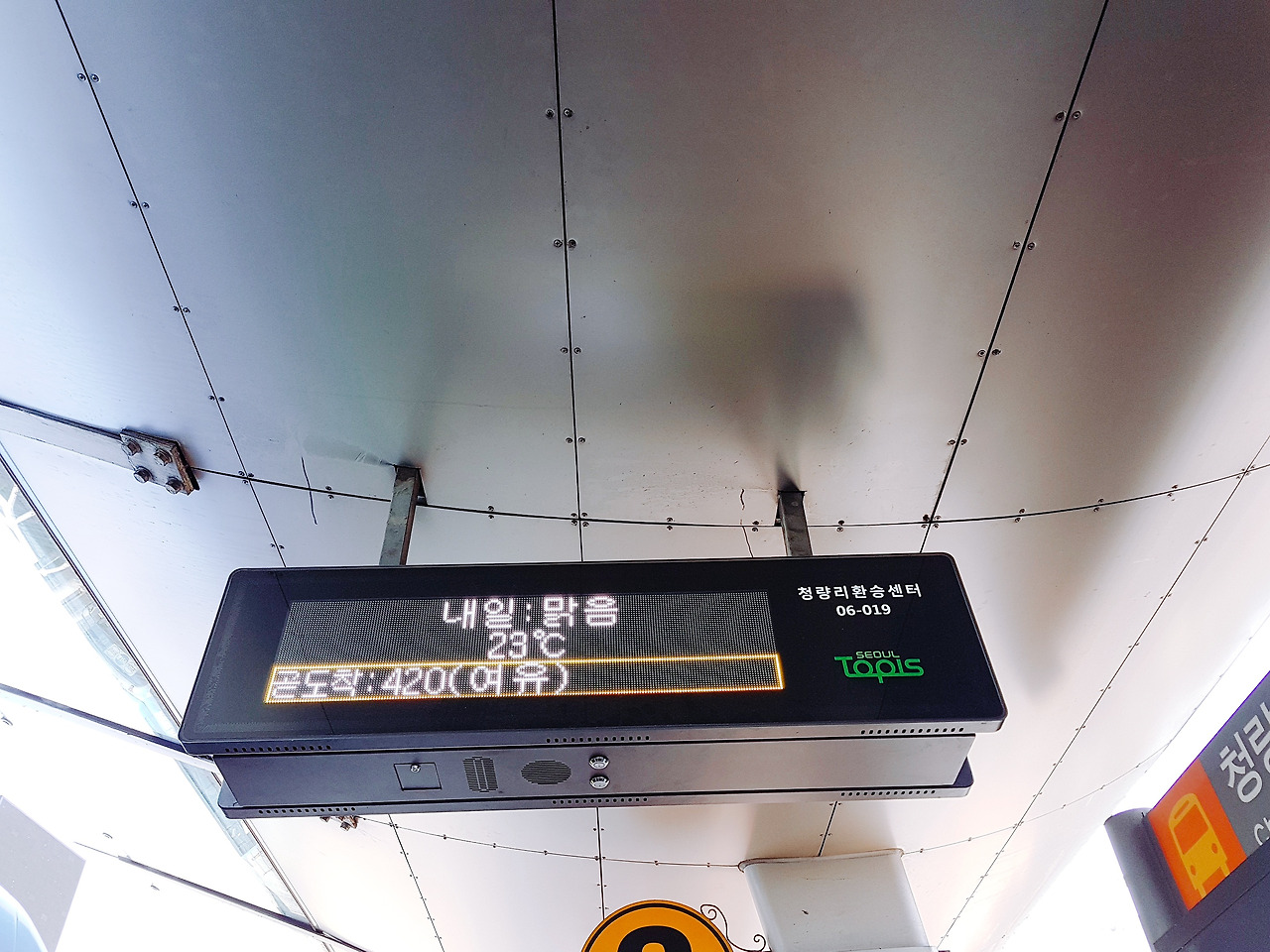 그리고 다른 정류장을 유심히 보니 모든 정류장에는 없었다. 시범서비스같았다. 내가 본 곳은 미아역, 청량리역이였고 지나가다 버스안에서 본 정류장에는 분명 부연설명이 없었다.