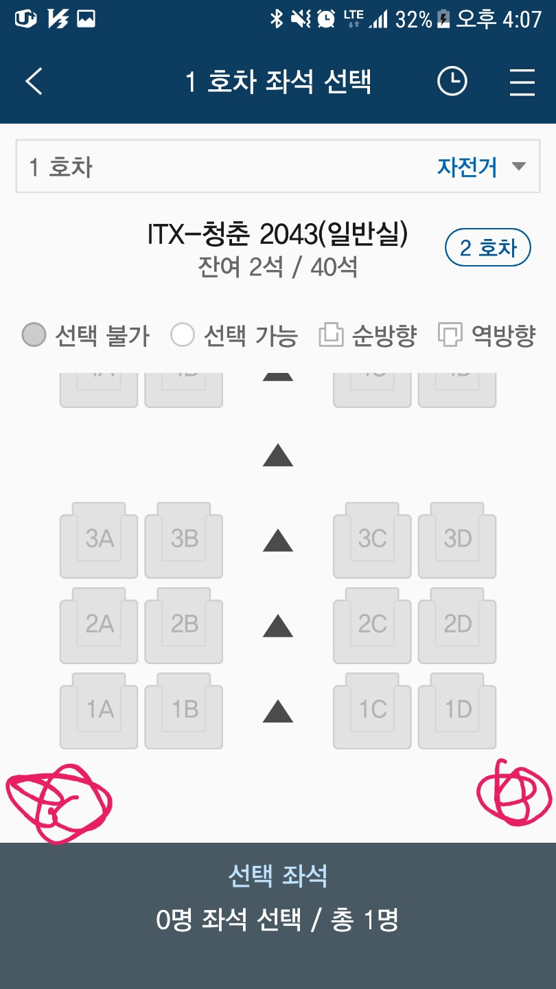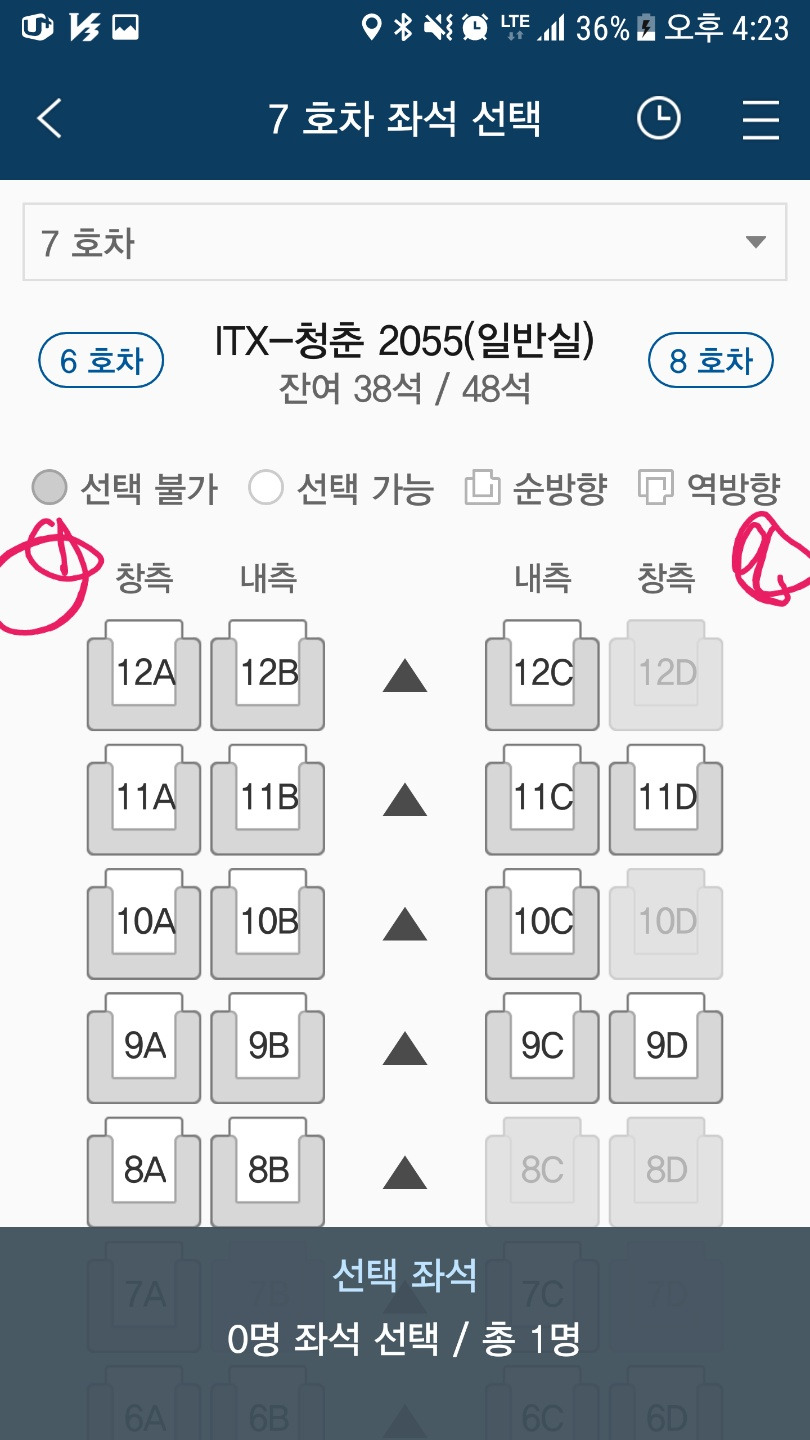 기차(ITX)에서 핸드폰 충전이나 노트북 전원을 위하여 항시 맨앞이나 뒤에 창쪽으로 예약을 한다. 콘센트가 그 부근에 있기 때문이다.