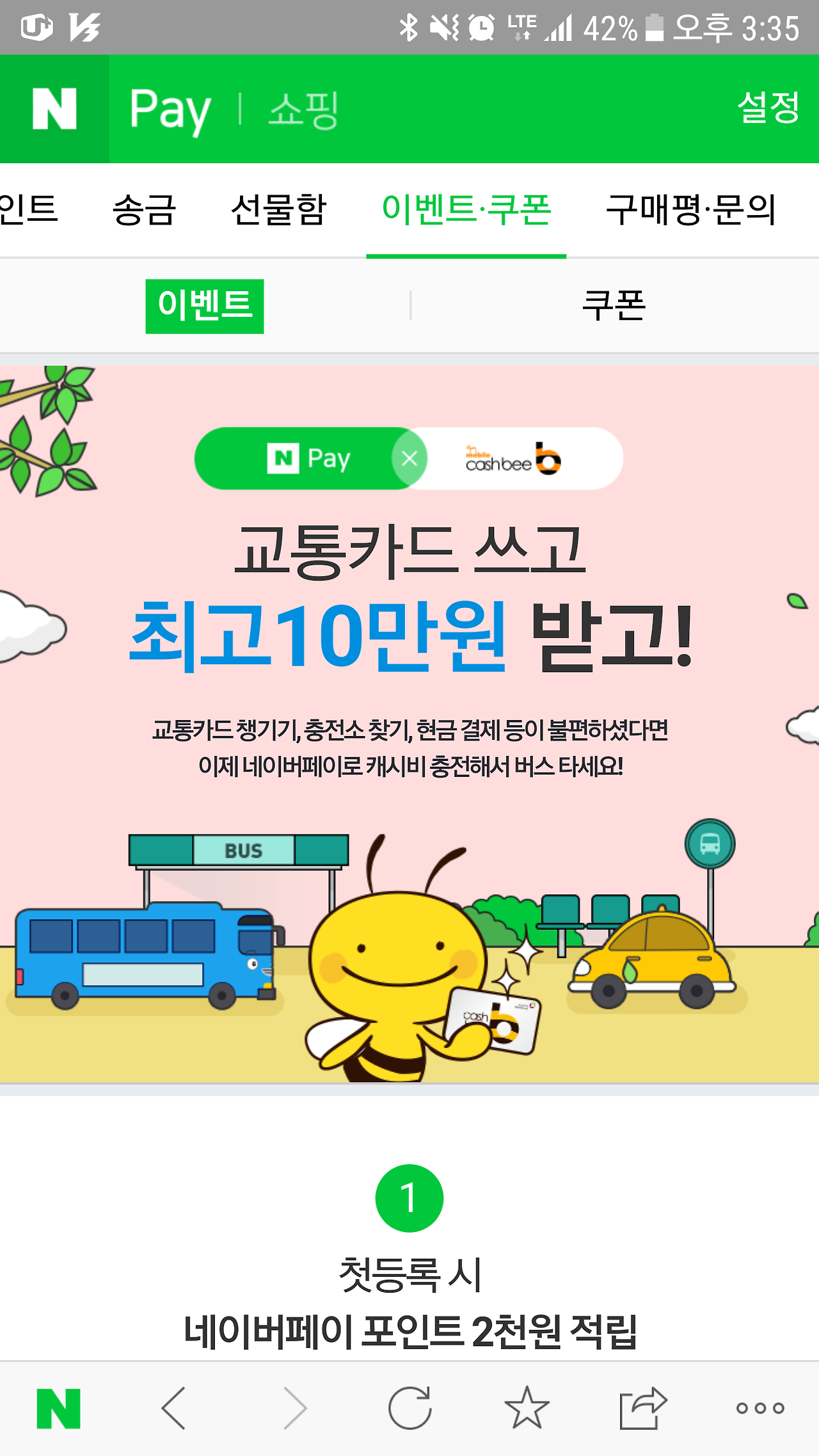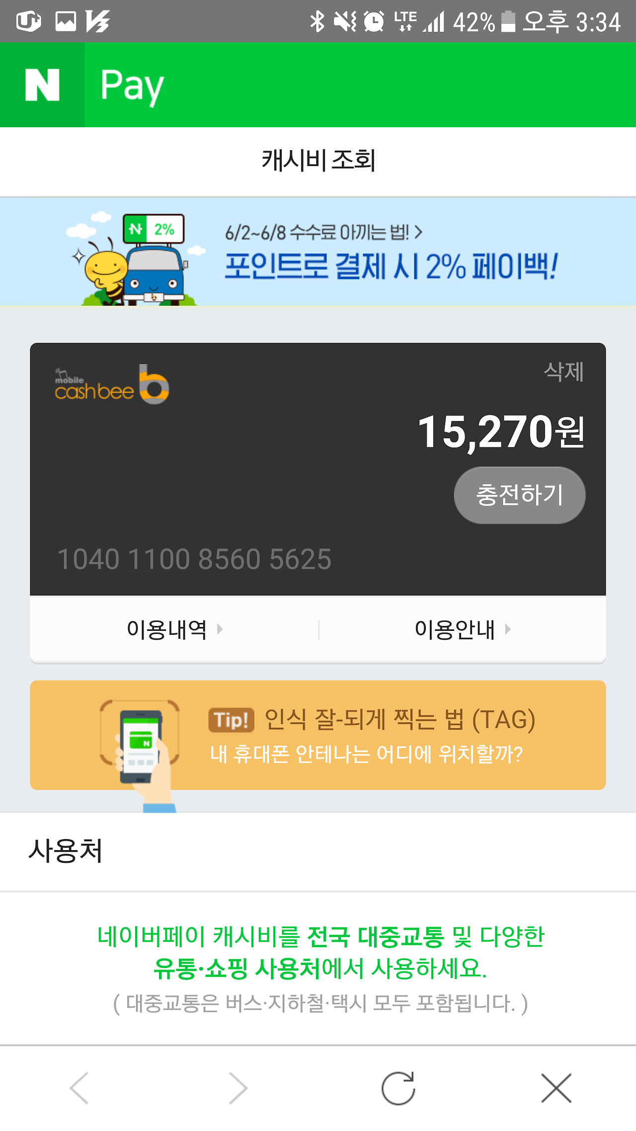 문제는 이동수단을 위한 네이버페이 캐시비였다.