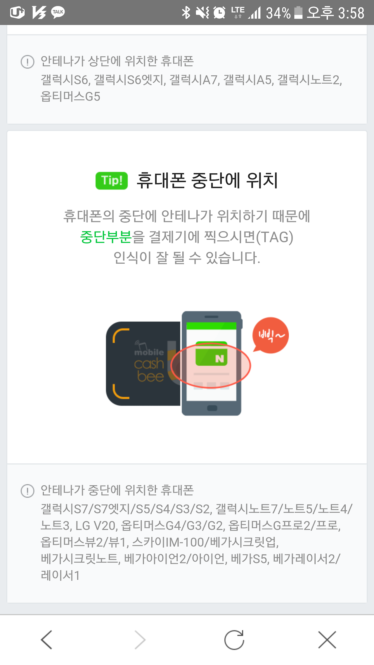 두번 정도 터치는 했지만, 역시 성공 알고 봤더니 NFC가 꺼져 있었다. 이 무지함의 극치
