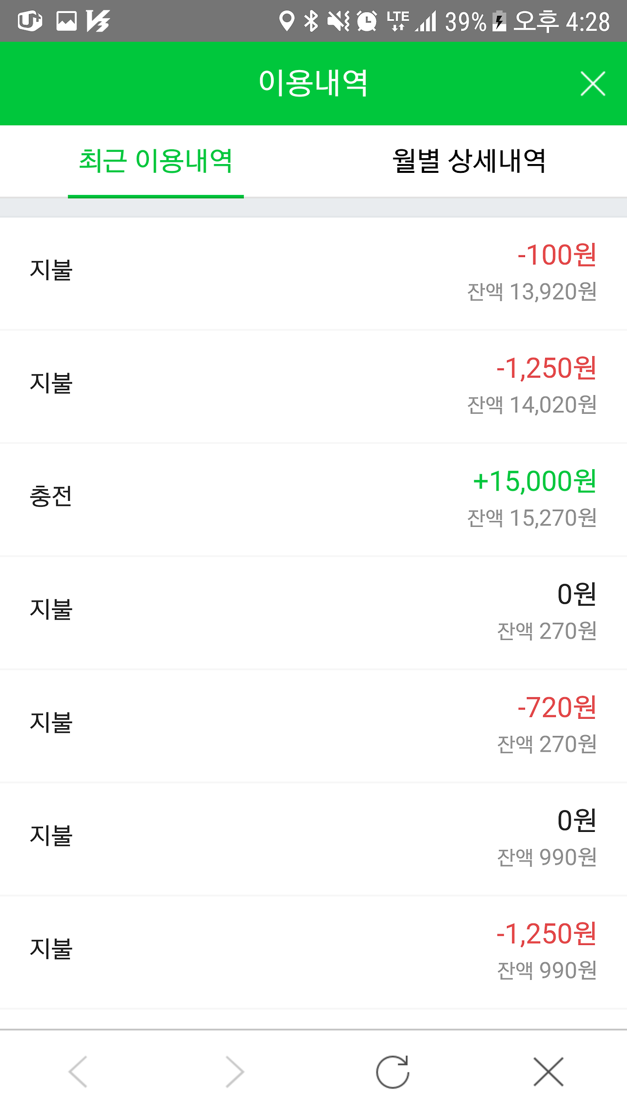 보통은 교통할인이 더 되는 신용카드를 쓰는데, 우연히도 어제 네이버페이 캐시비 6월 이벤트 땜시 충전을 해서 태그를 해봤는데 태그가 되지 않아서 실패가 되었다. 간만에 써서 그런지 혹은 케이스를 새롭게 바꿔서 그런지 다시 전철가서 테스트 해 봐야 한다. 이 교통카드가 안되면 동전을 쓰거나 다른 교통카드앱을 써야하는 부담이 생기는 것이다.
