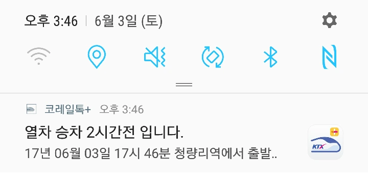 기차 출발 두시간 전 알림, 슬슬 조급해 진다.