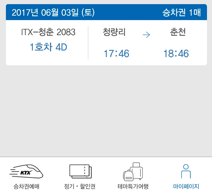 역시 네이버페이 캐시비는 문제 없었다. 엄청 이른시간에 청량리 도착이다.