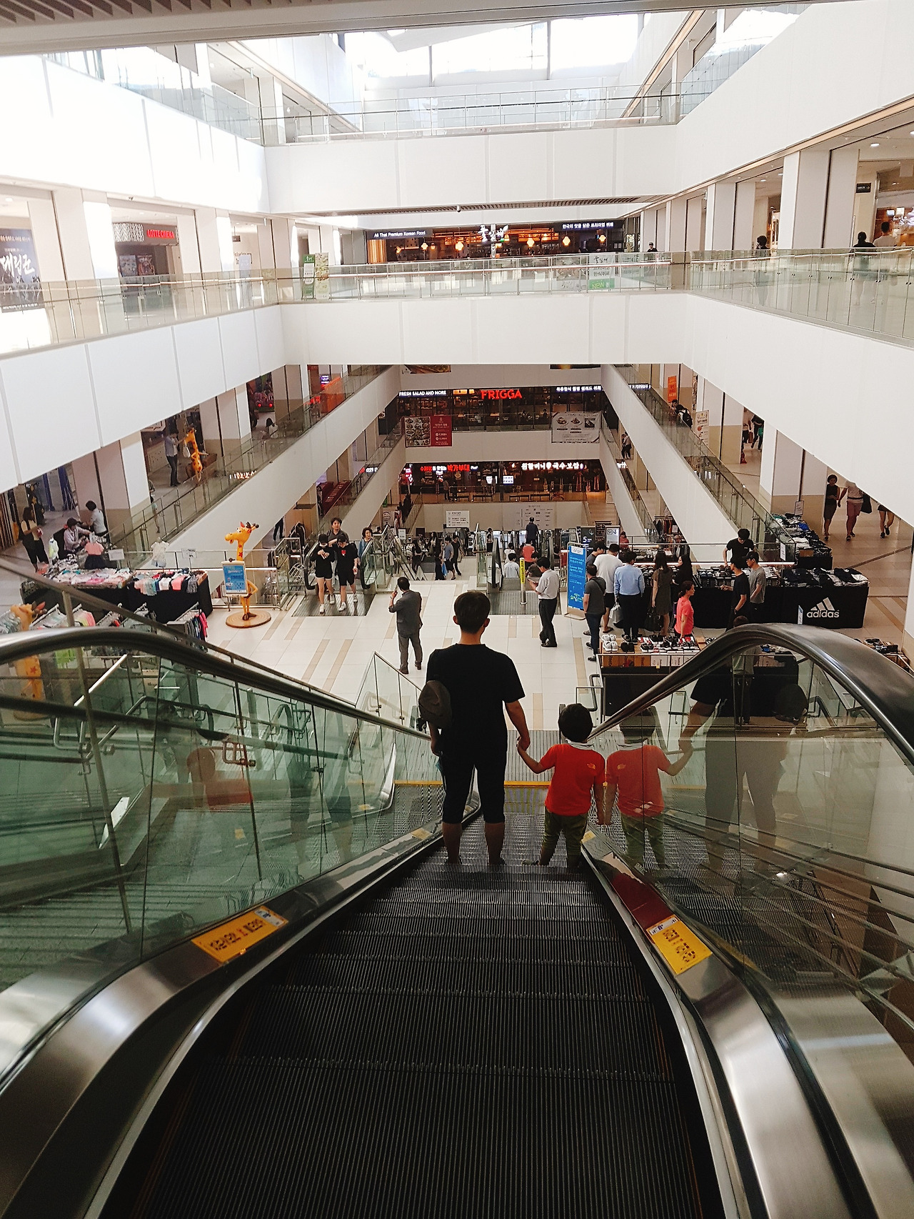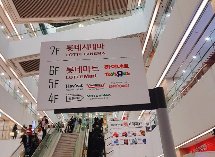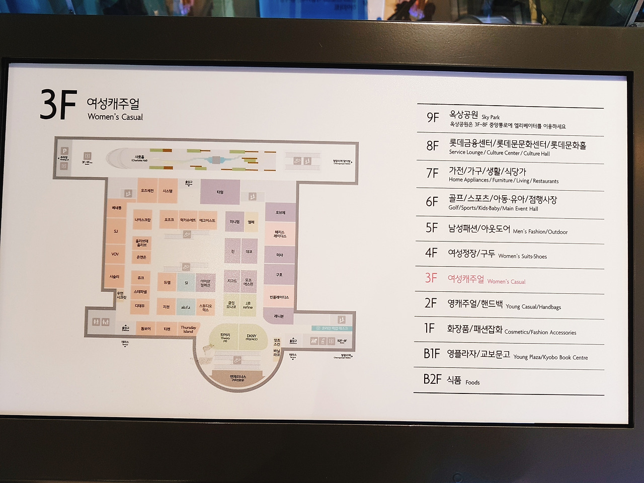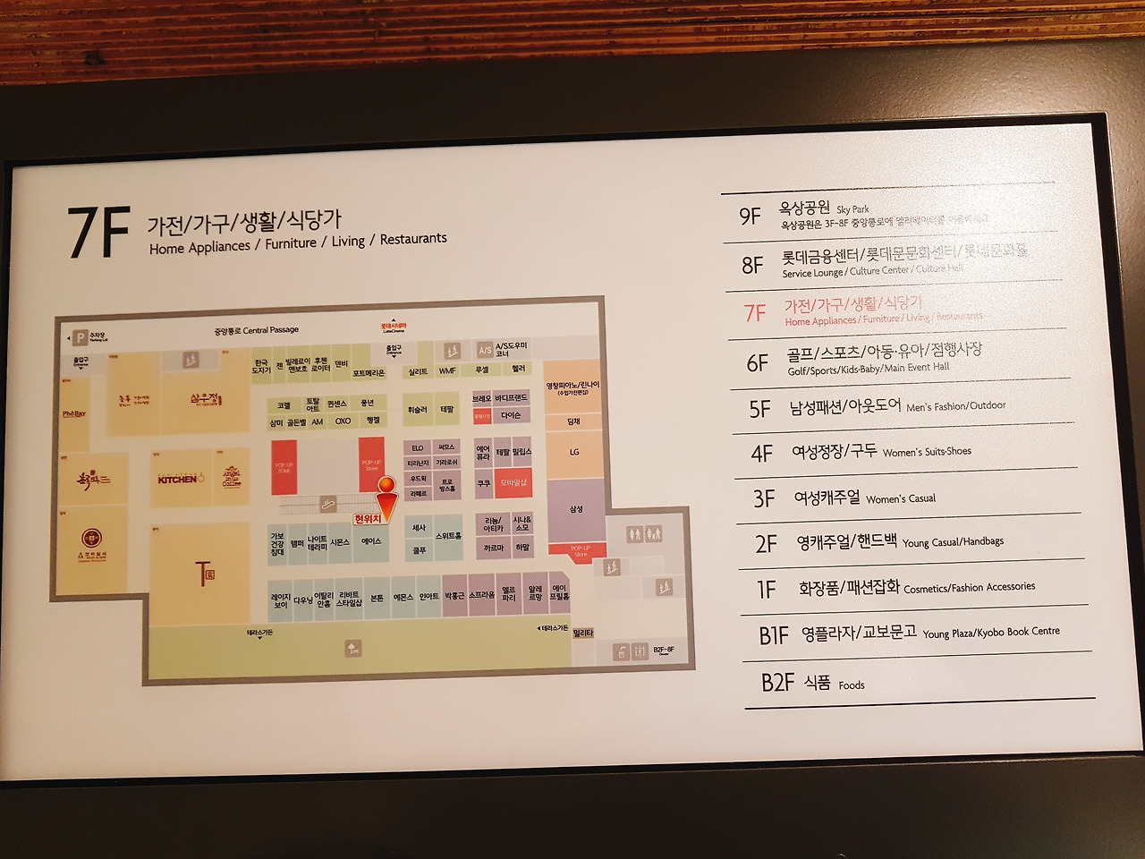 백화점이 커서 에스컬레이트를 3층에서 상행으로 한번 더 갈아타야 한다. 오른쪽으로 돌아가서 딕진하다. 이정표를 보고 왼편의 상행 에스컬레이트를 타면 된다. 버거럽다.
