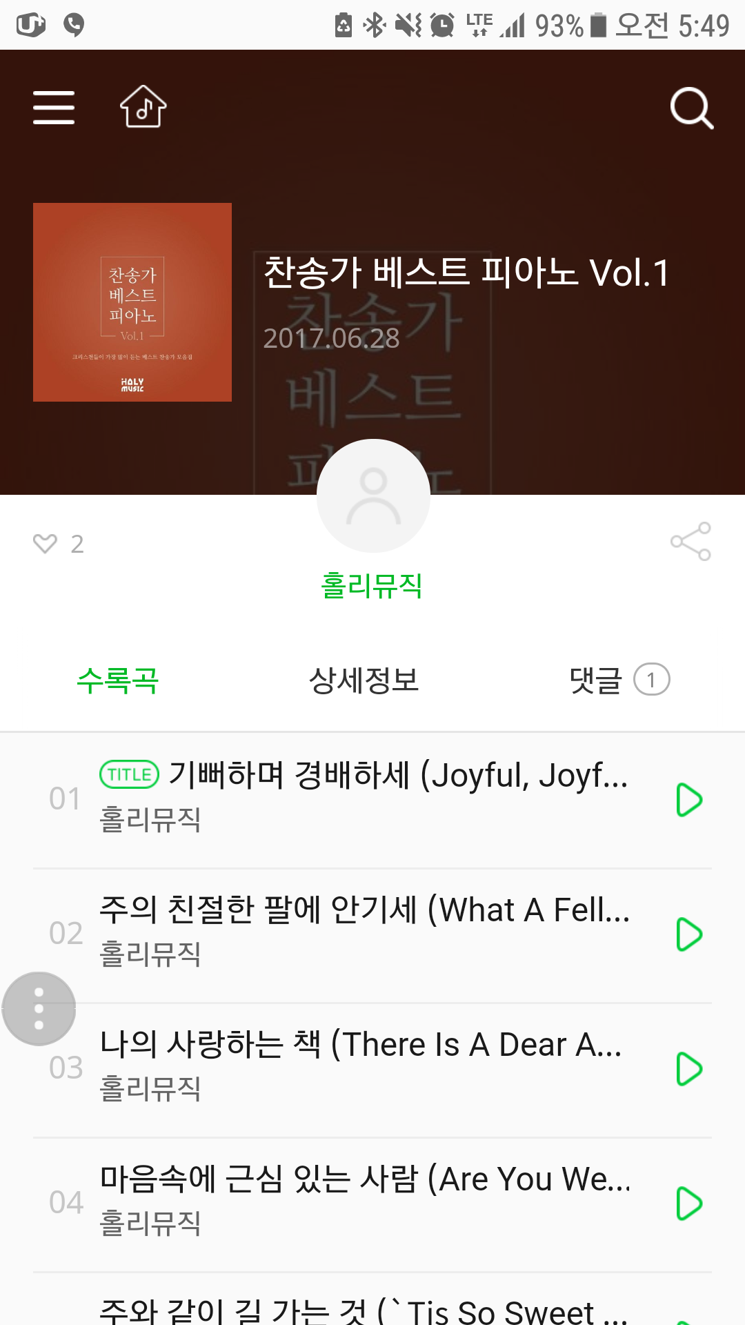 #음반기#찬송가#베스트#피아노#홀리뮤직#비가주룩