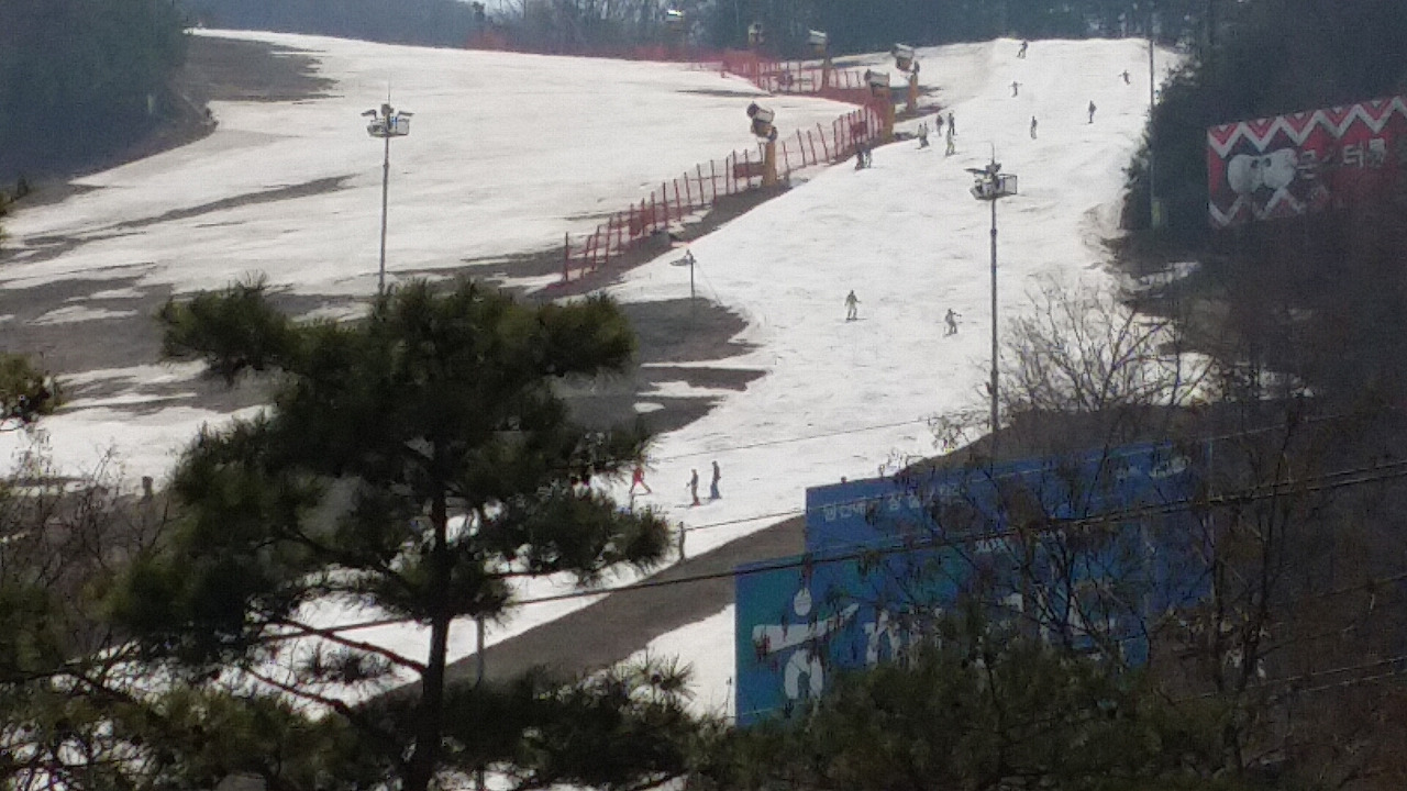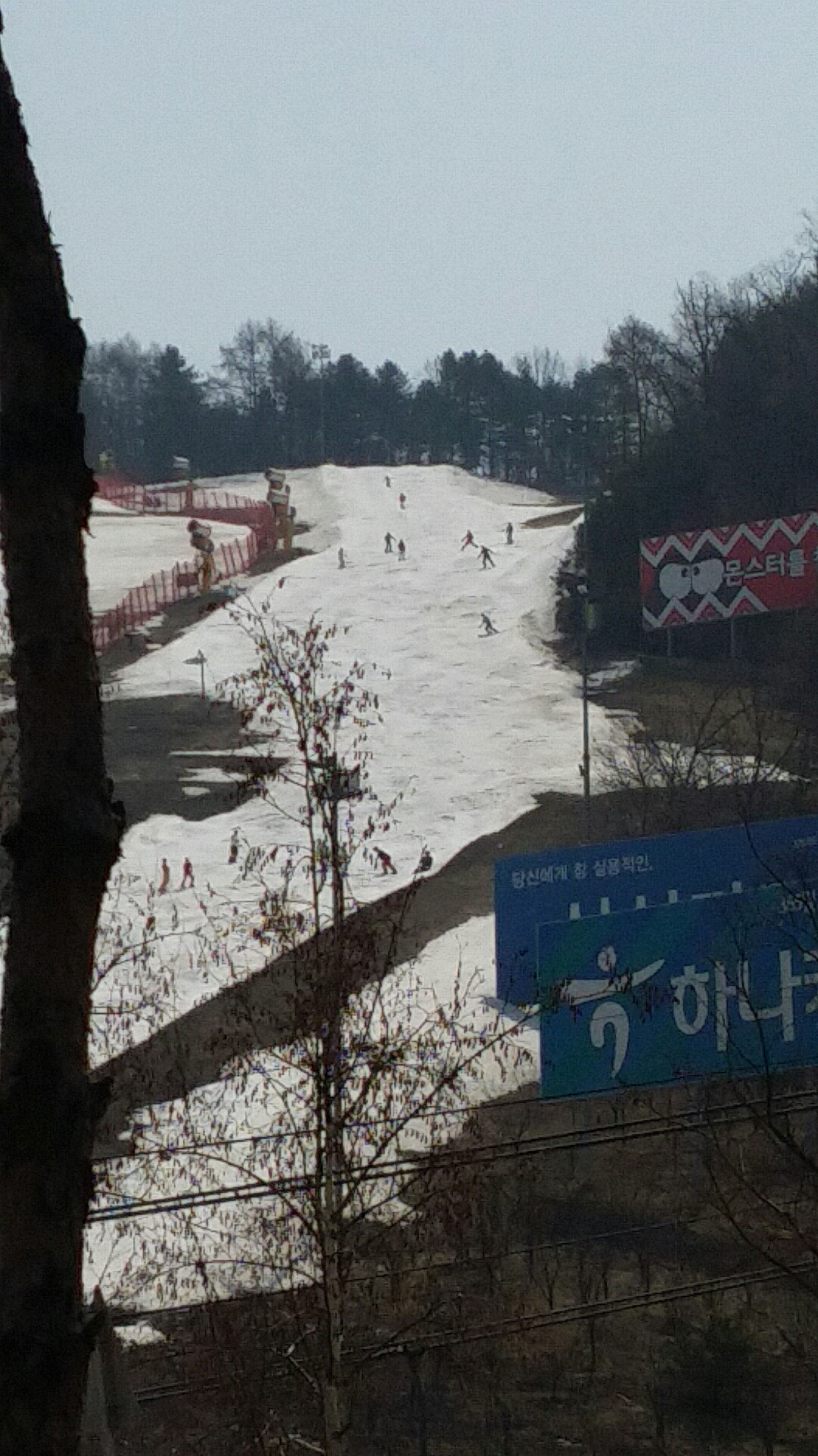 날도 참 좋았는데 우리를 반기는 것은 스키타는 사람들이였다. 나또한 반팔에 자켓을 걸치고 나올 정도로 덥다는 표현이 어울리는 날이였다.