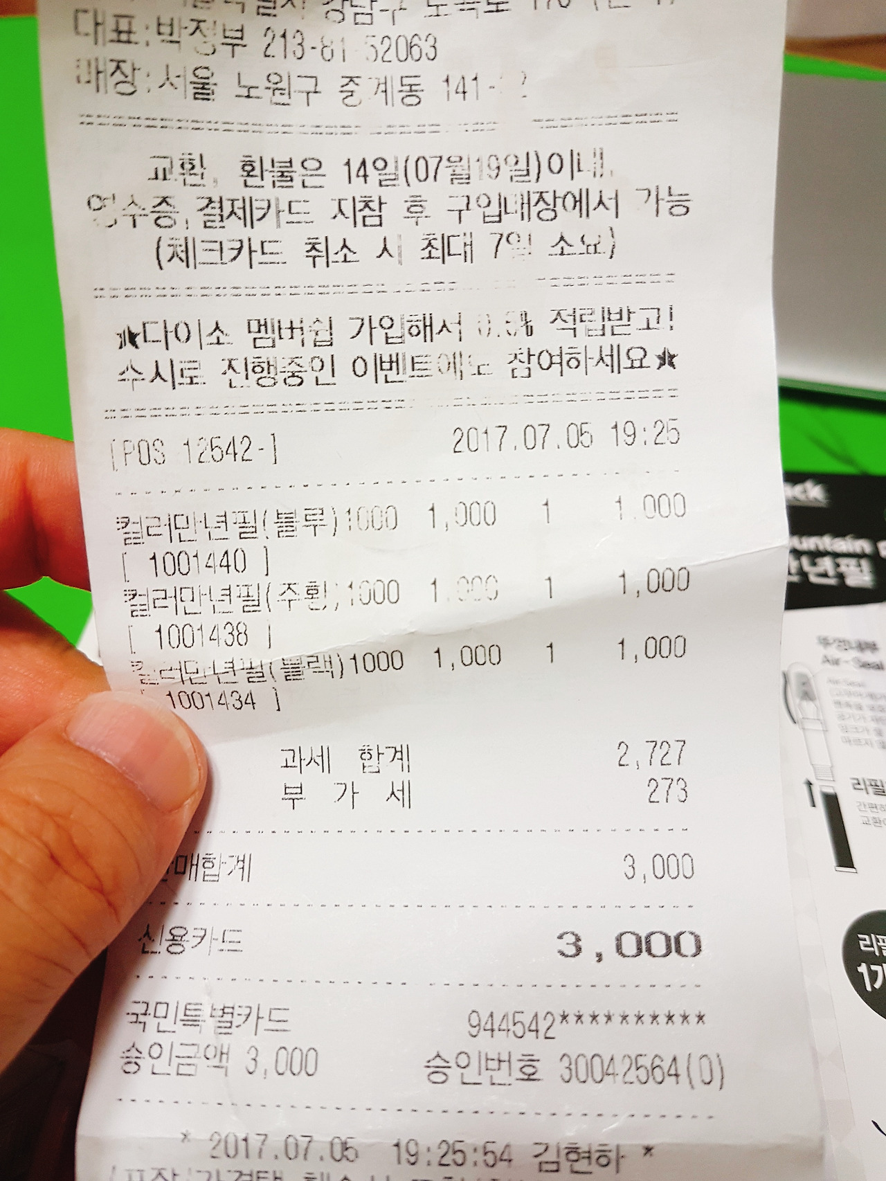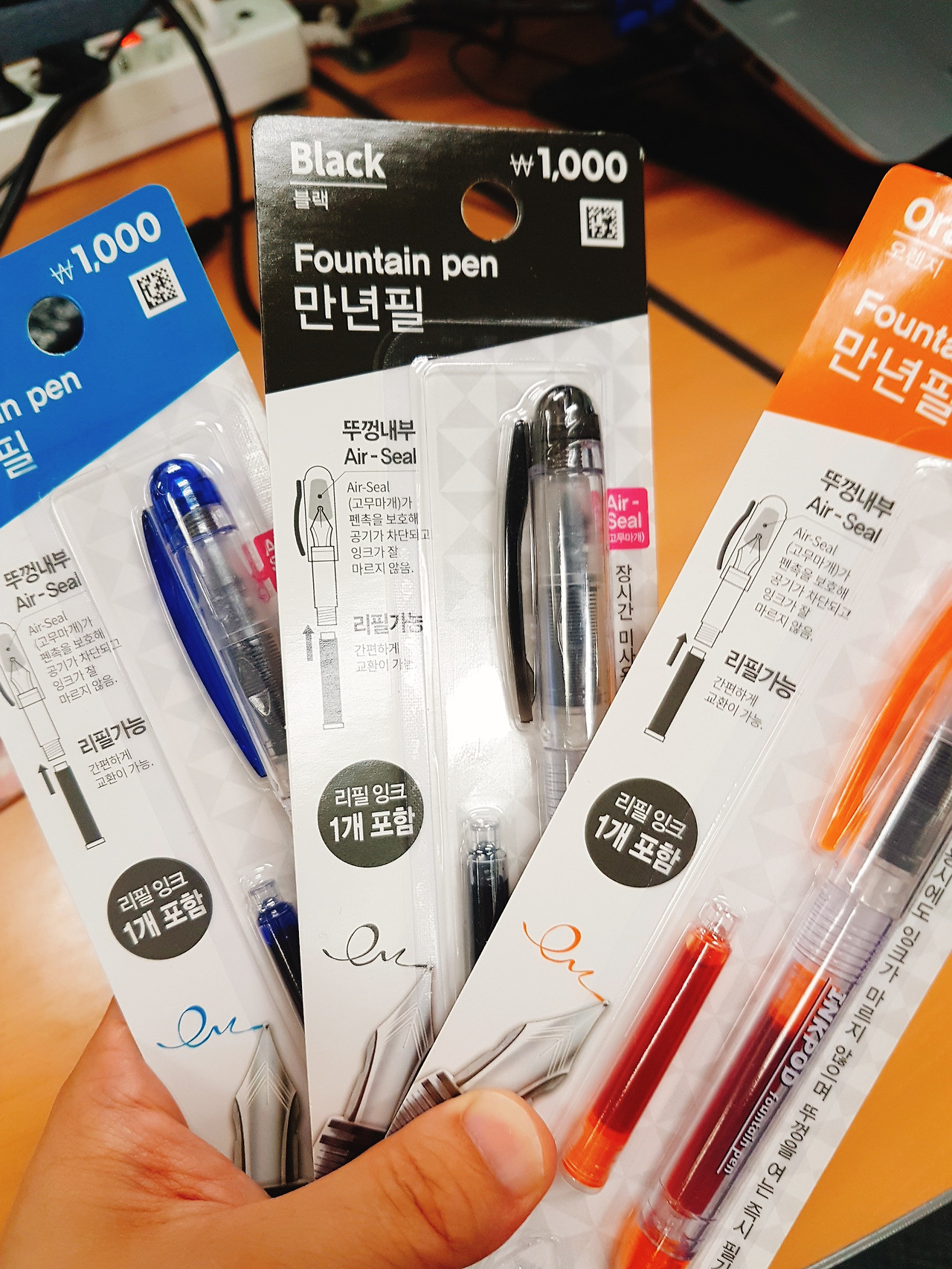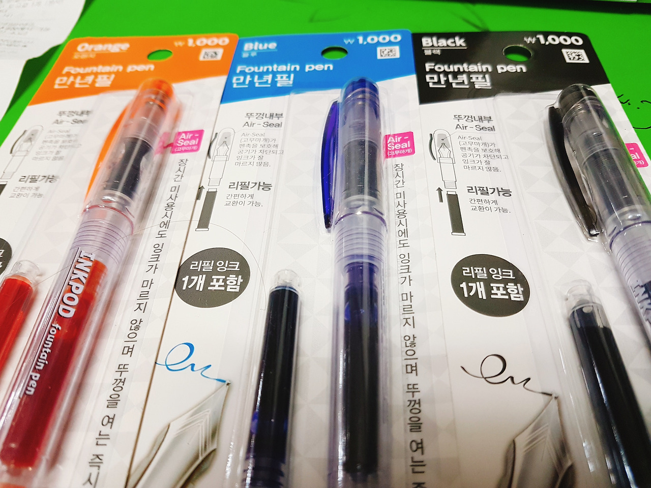 다이소에 천원짜리 만년필이 있다는 이야기에 혹했다. 역시나 지나가는 길에 다이소가 있어서 무작정 만년필을 득템한다.