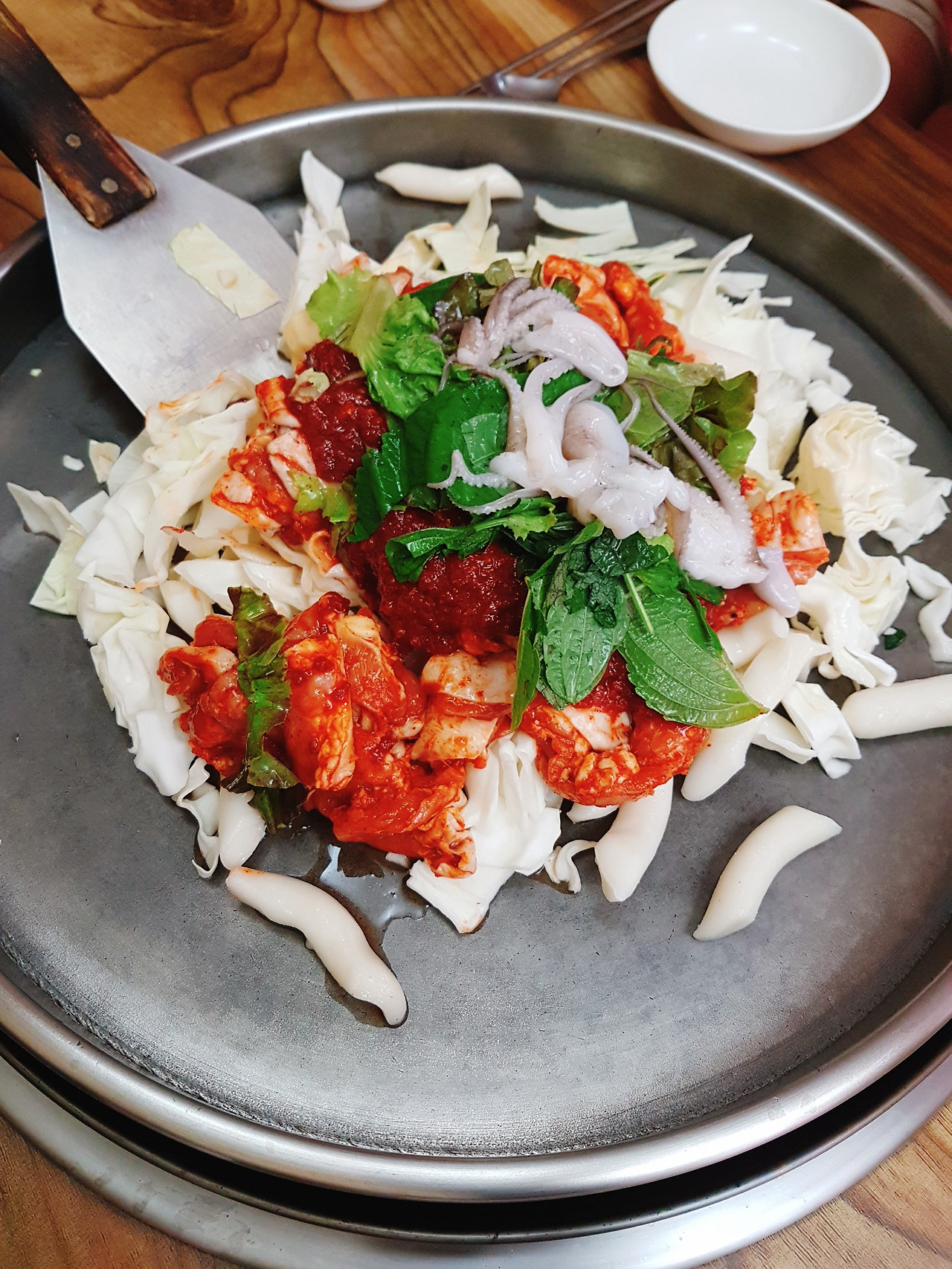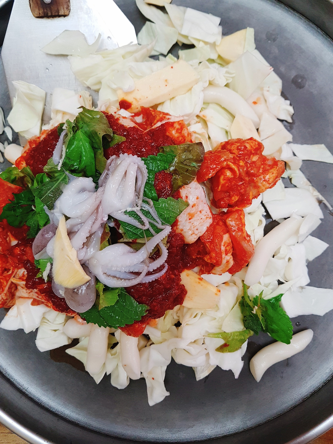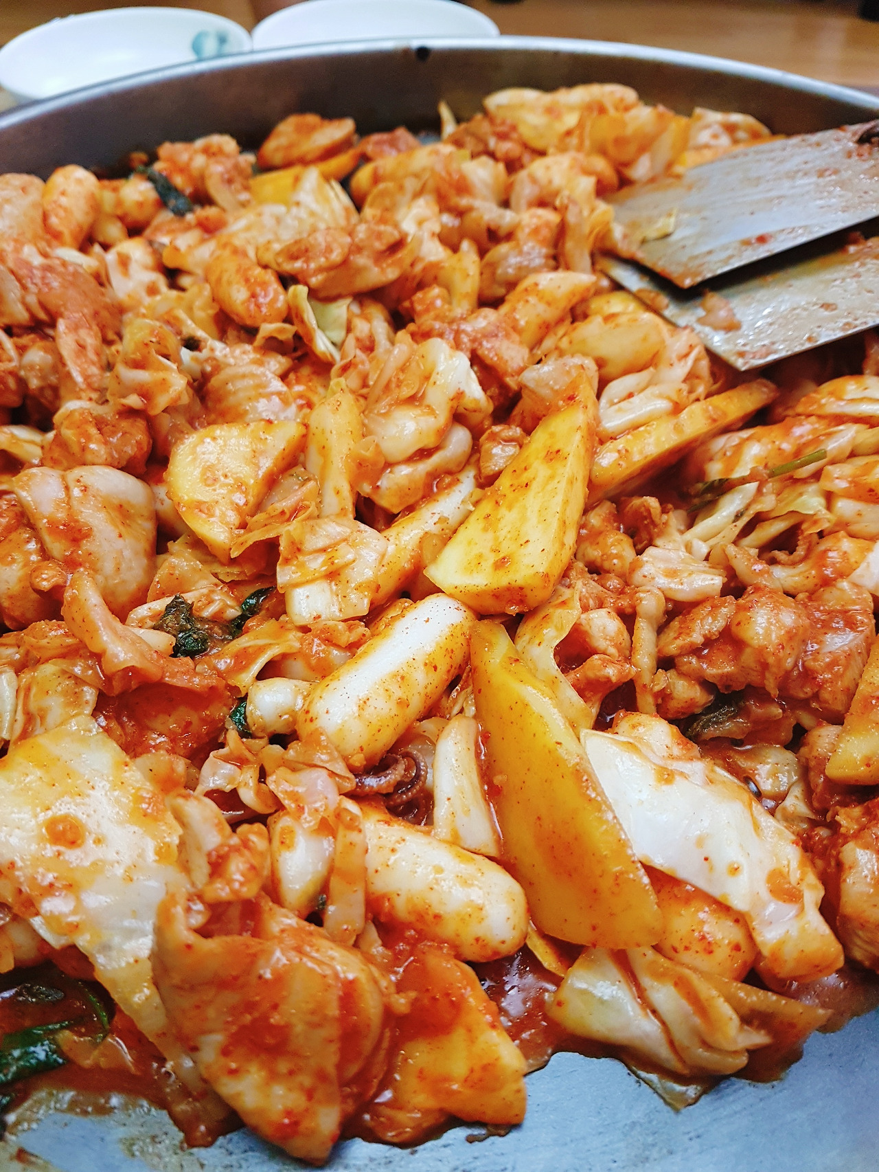 치즈와 쭈꾸미 느낌이 딱온다. 퓨전같기만 그래도 닭갈비다. 군침이 그냥 넘어간다.