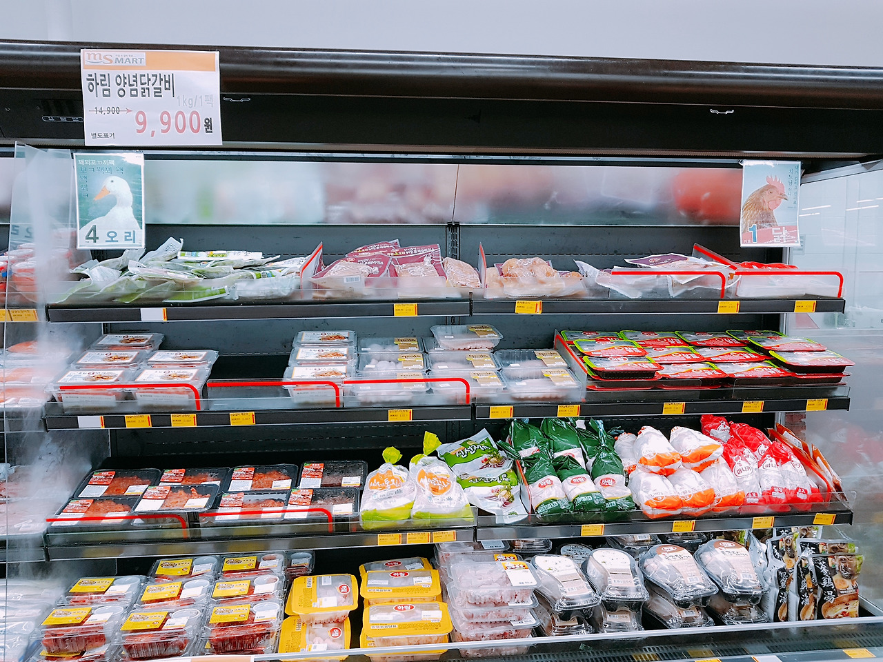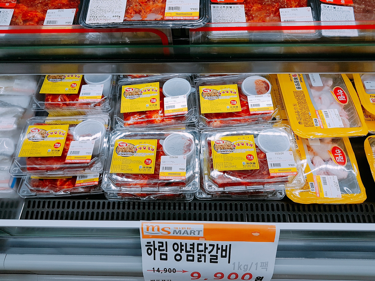 춘천에는 마트에서 삼겹살과 양념닭갈비를 구매한다. 닭갈비의.명소 춘천이라 그런지 양념닭갈비 코너가 따로 있었다.