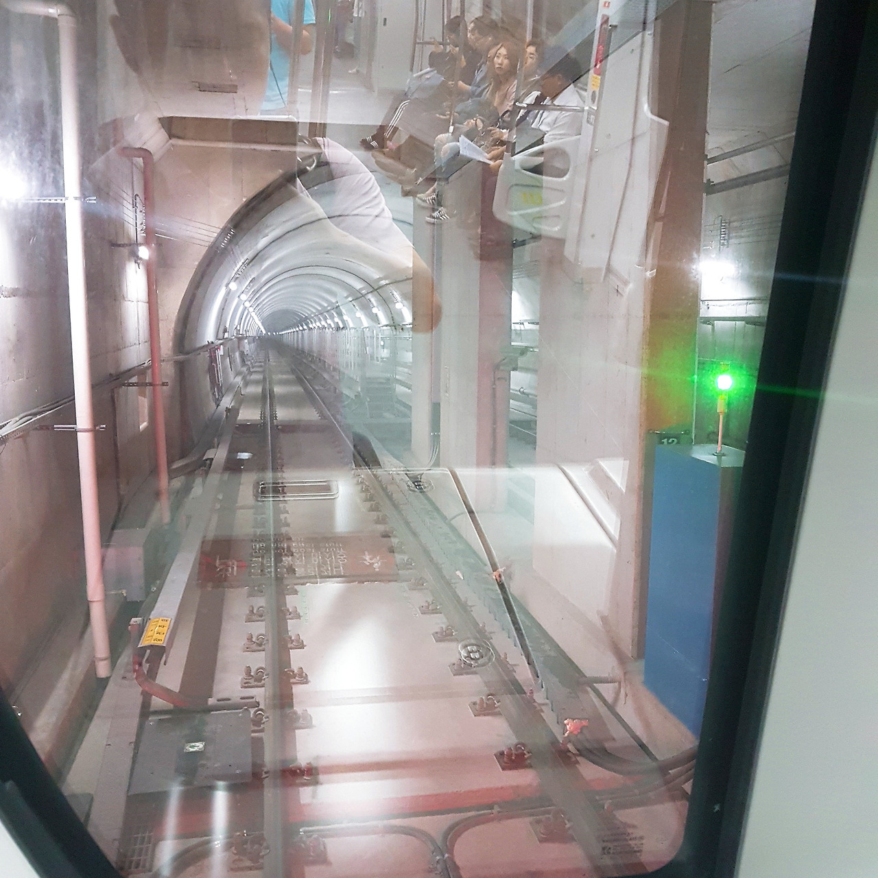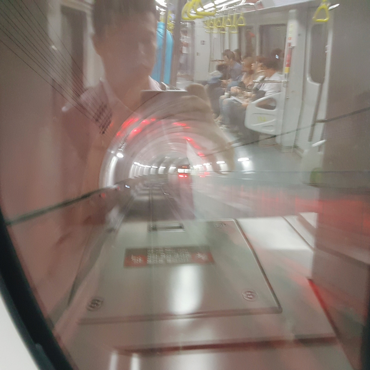 맨 뒤쪽에서 지하철의 느낌을 맛본다.