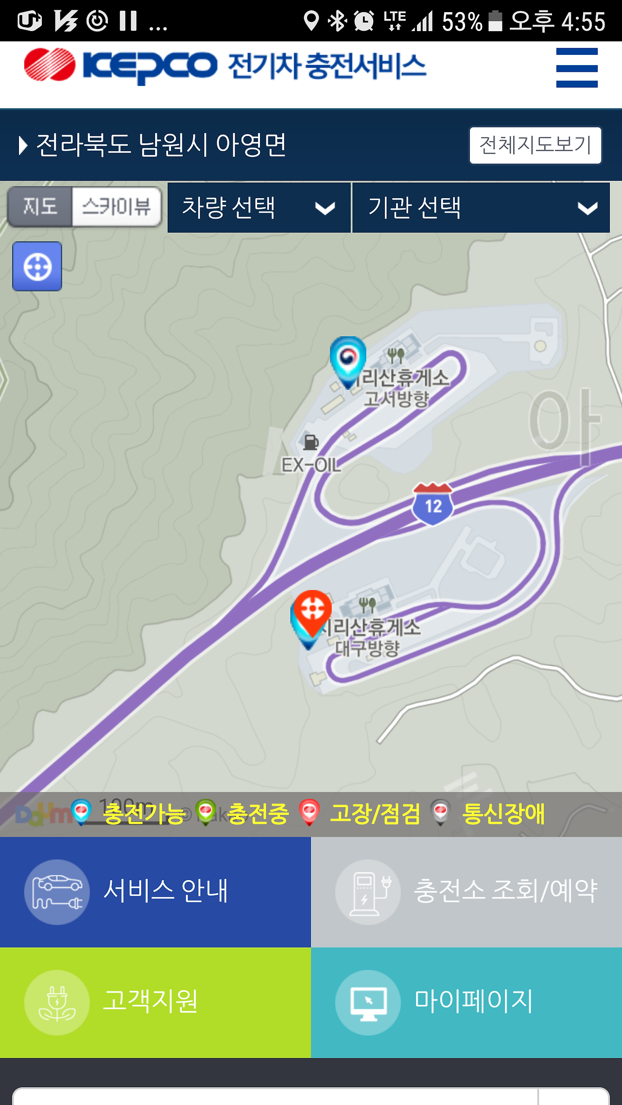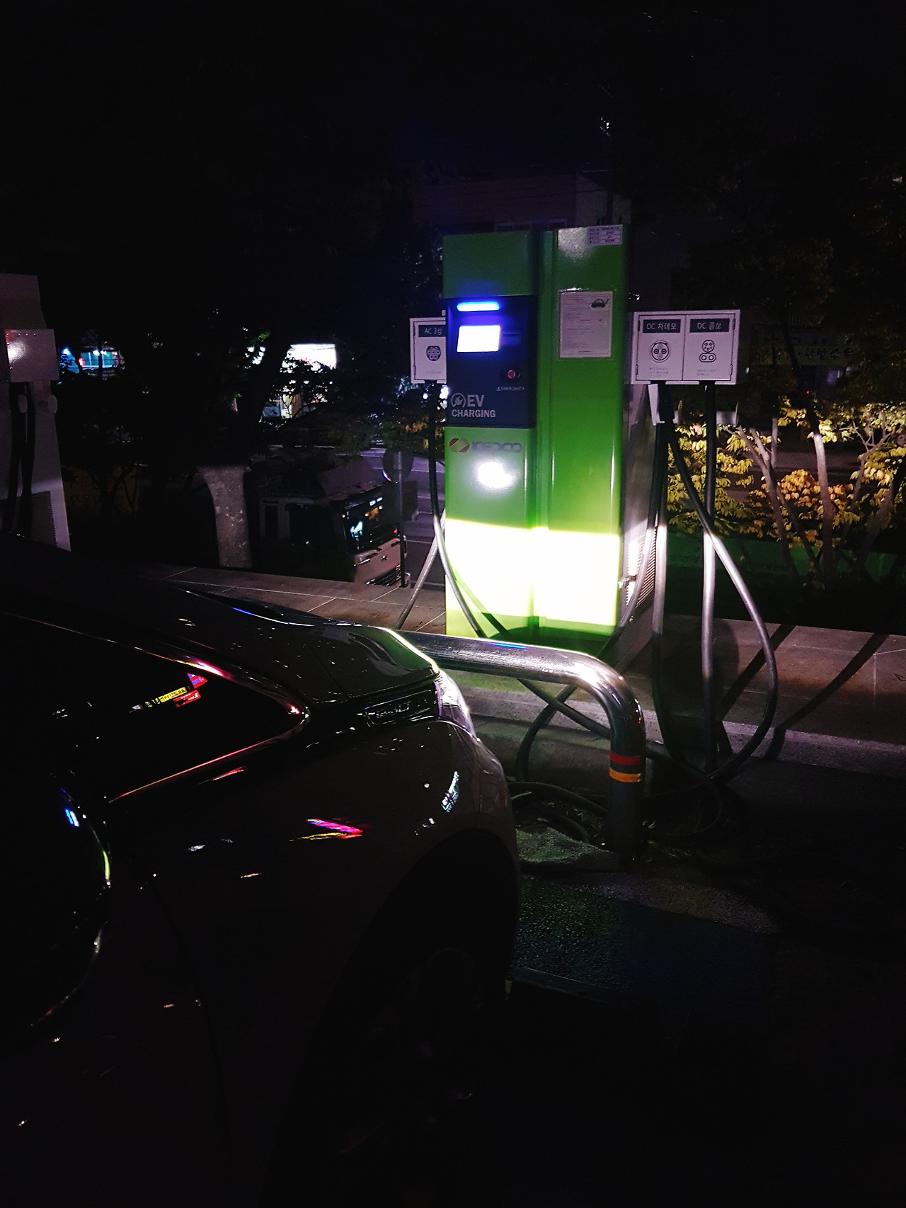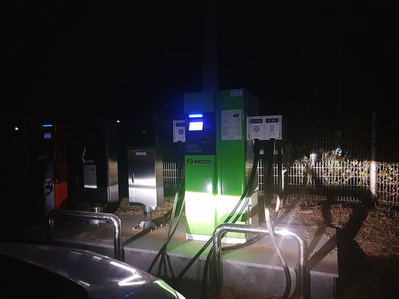 광주에서 대구 가는길 휴게소에서 환경부 EV충전소를 만나서, 주유를 한다.
