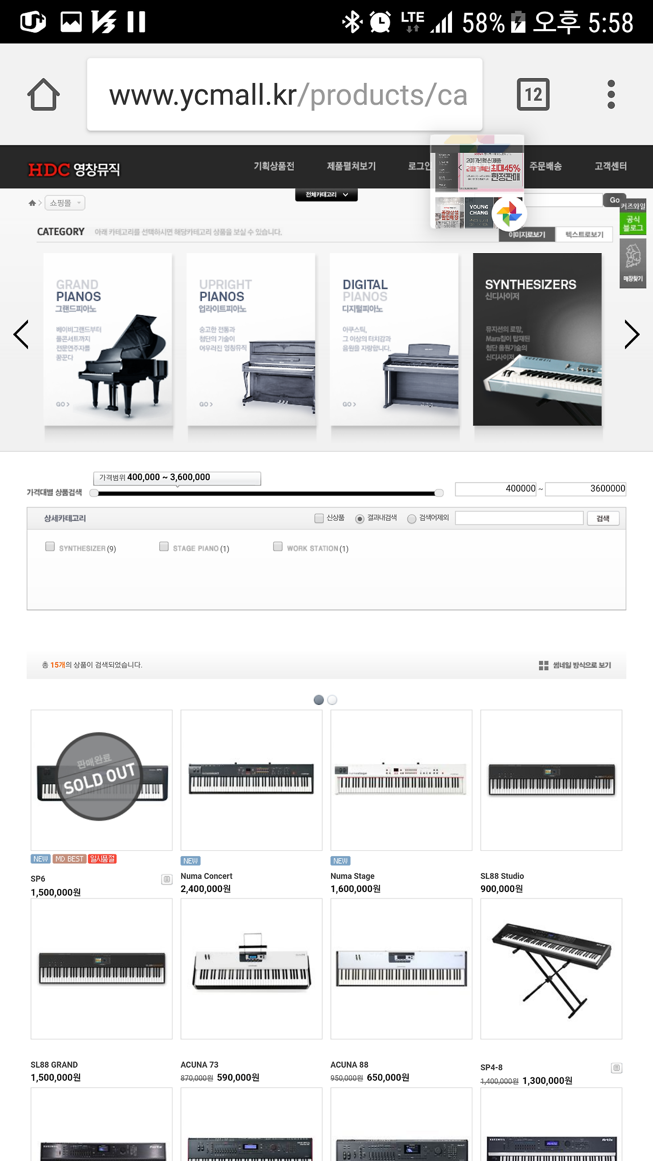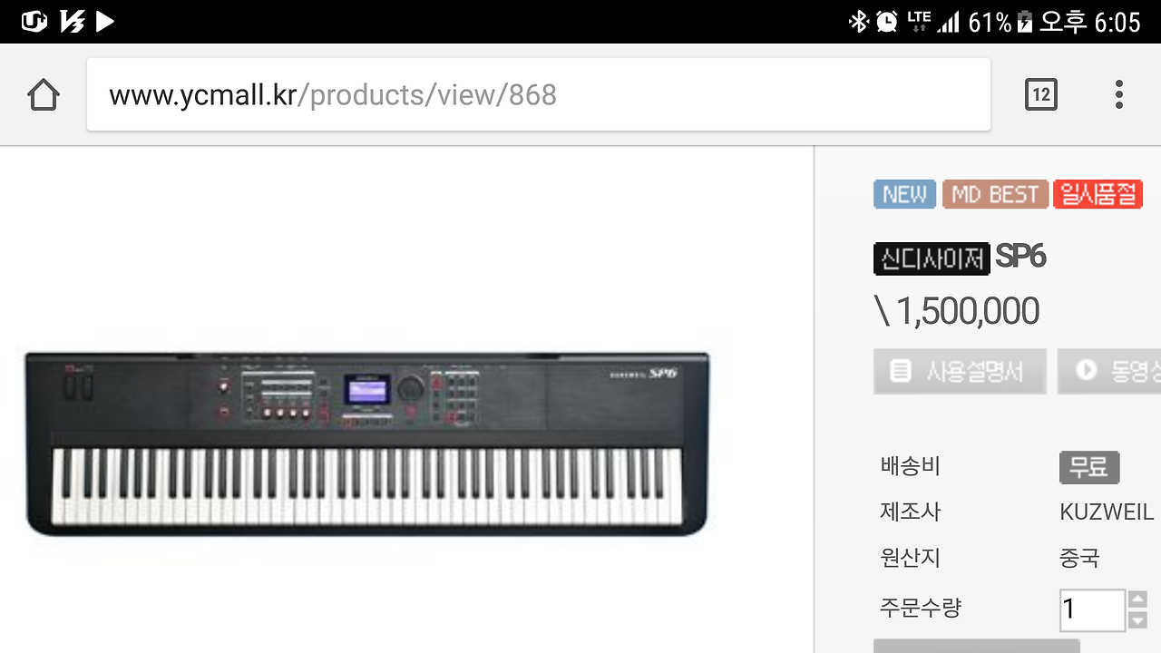 간만에 영창뮤직 공식 쇼핑몰에 들어왔다. 그런데 신디사이저 주문에 Sold Out, 일시품절이 떠 있었다.