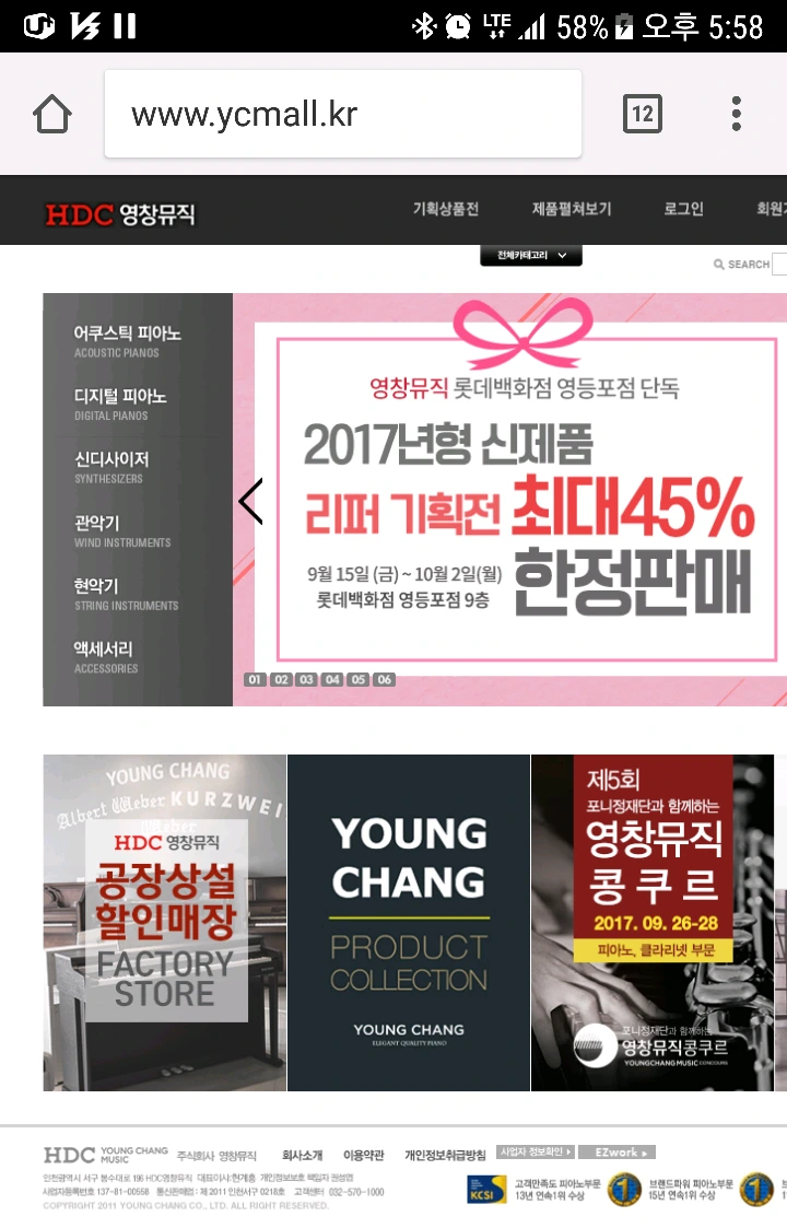 영창뮤직 공식 쇼핑몰에 내용이 너무 많다.