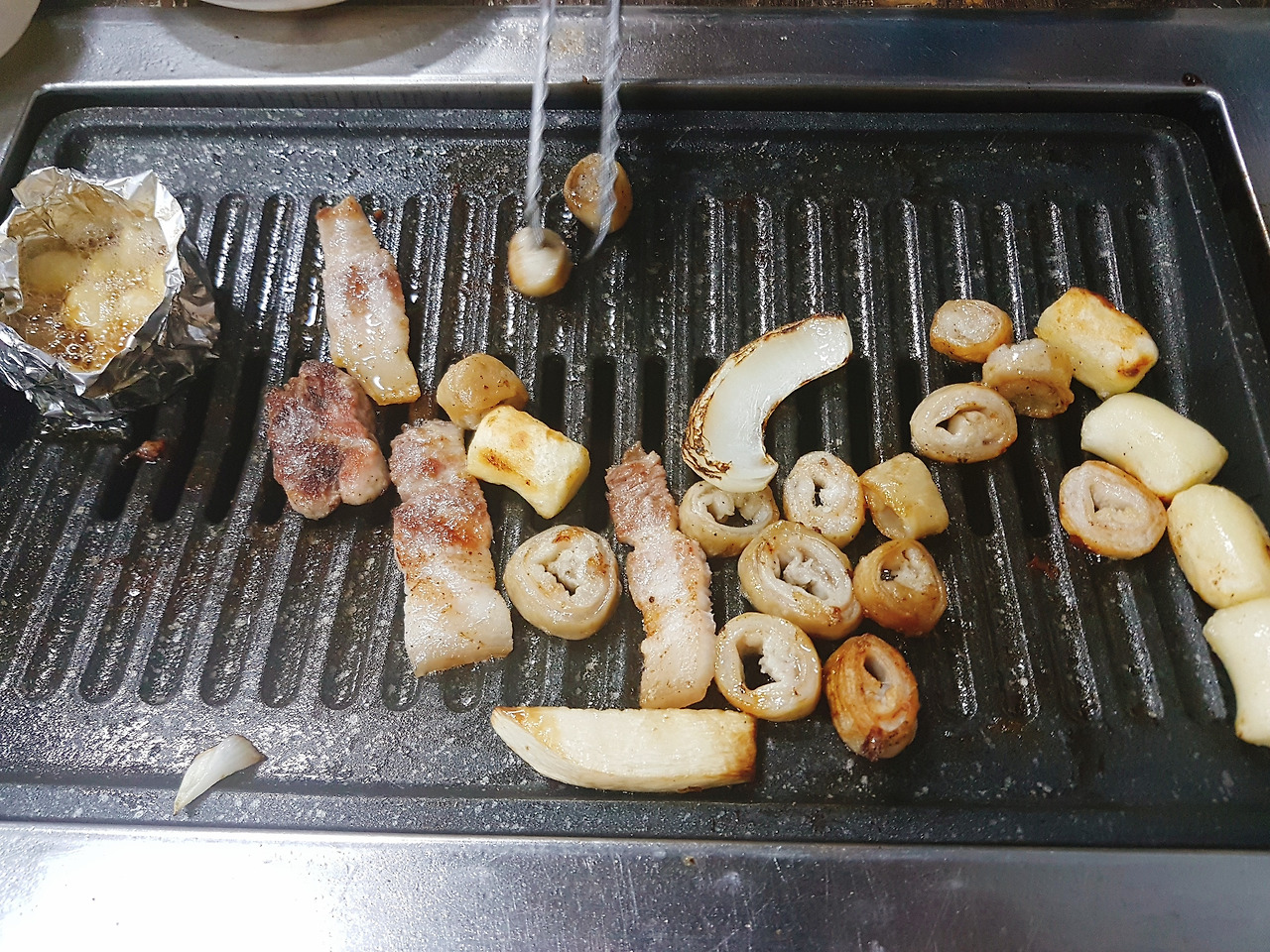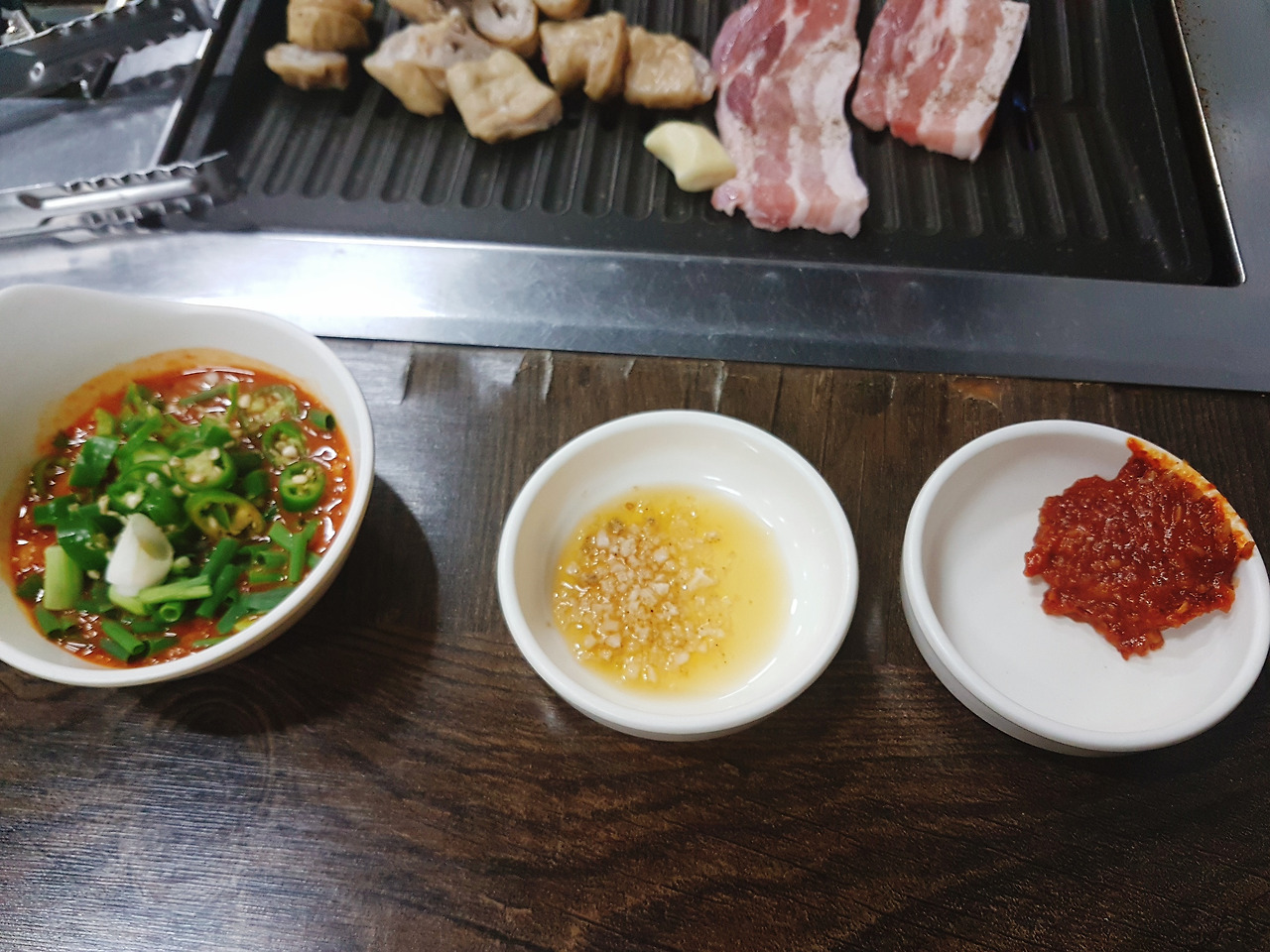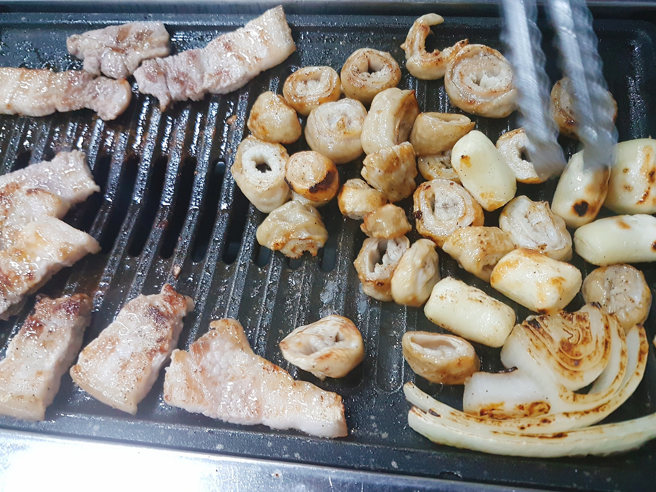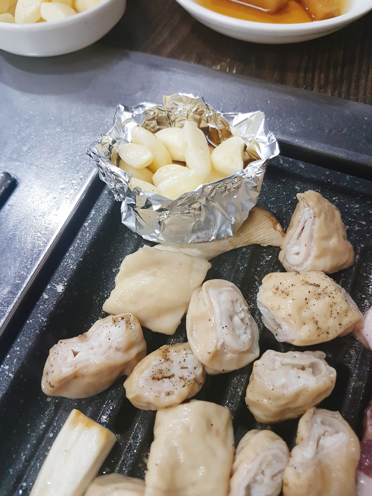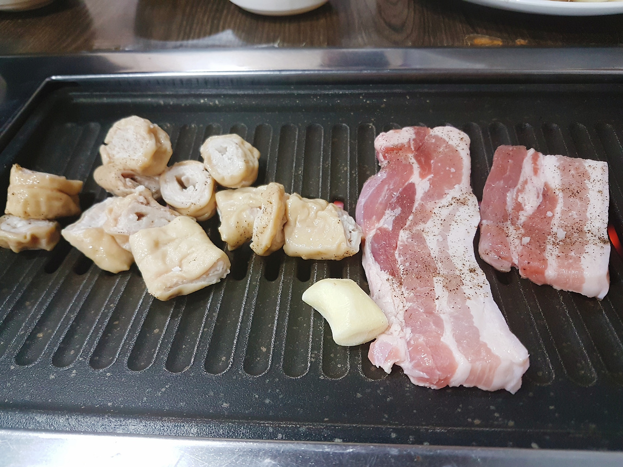 삼겹살만으로 계속 할때의 텁텁함을 막창의 고소하고 깔끔함이 풍성하게 만들어 준다.