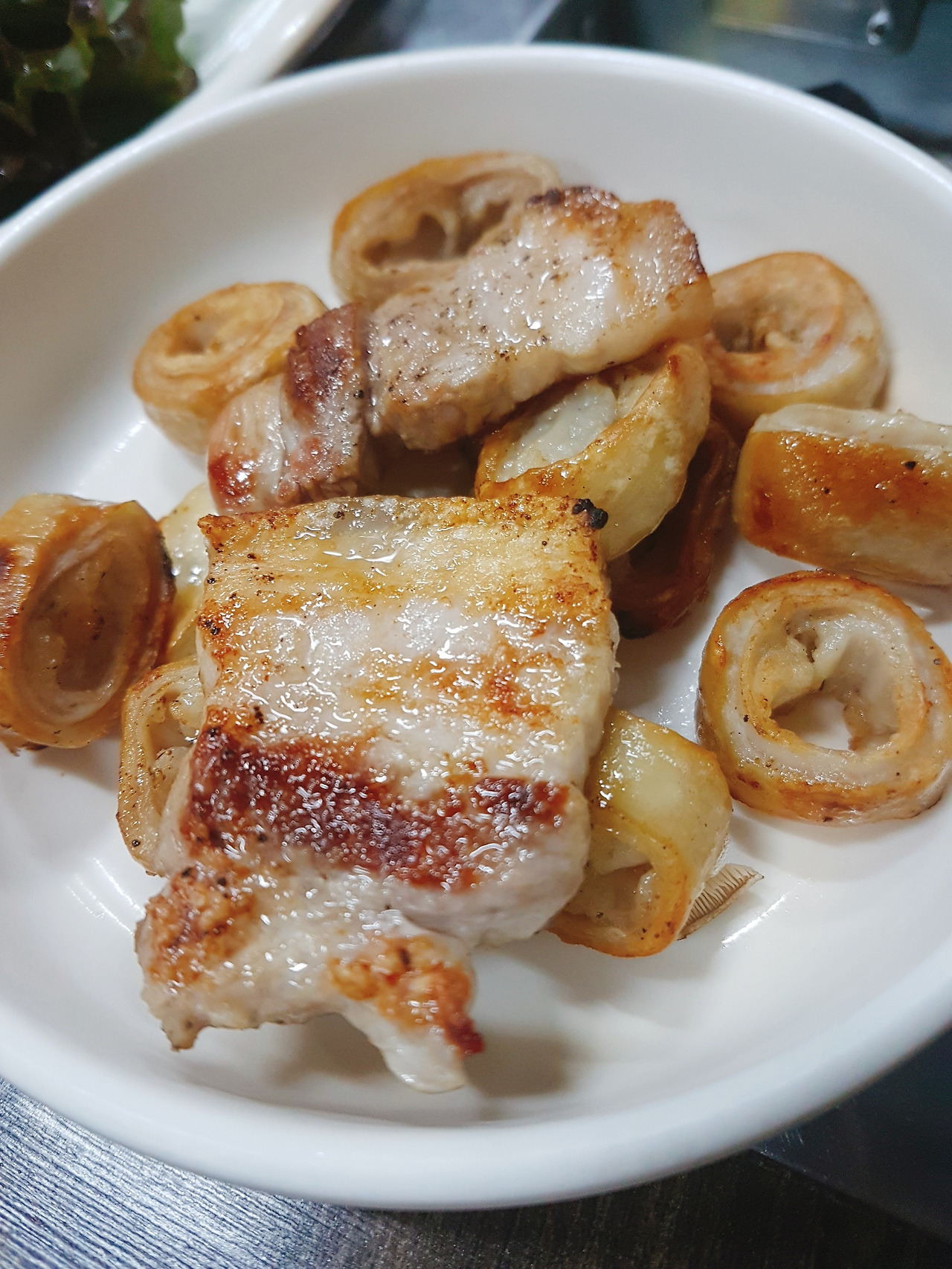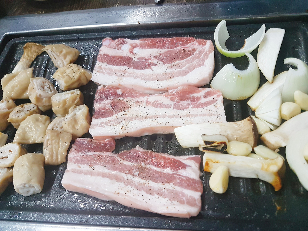 생삼겹이 아닌 냉동이다. 그래서 그리하였고, 실컷 먹었다.