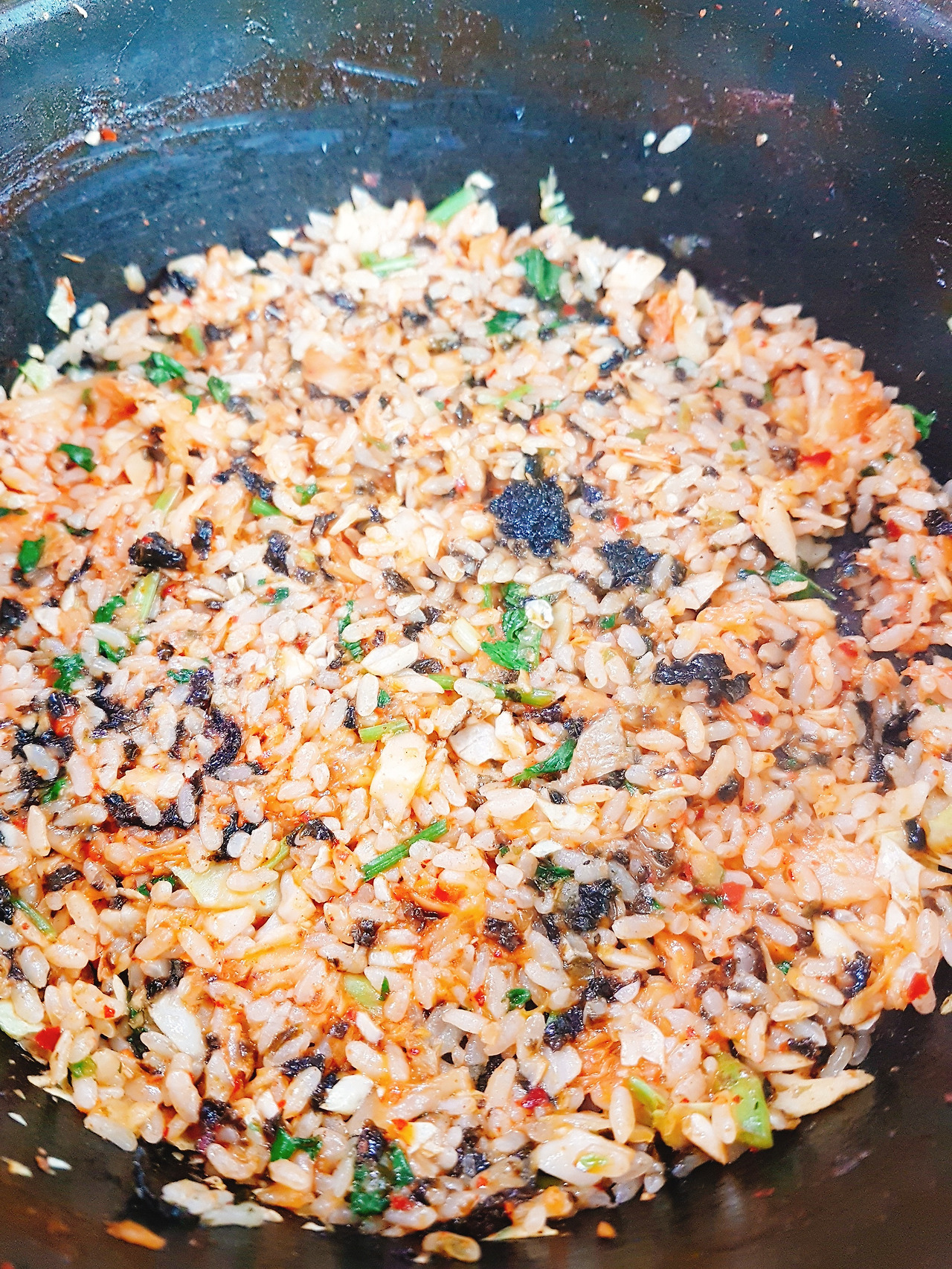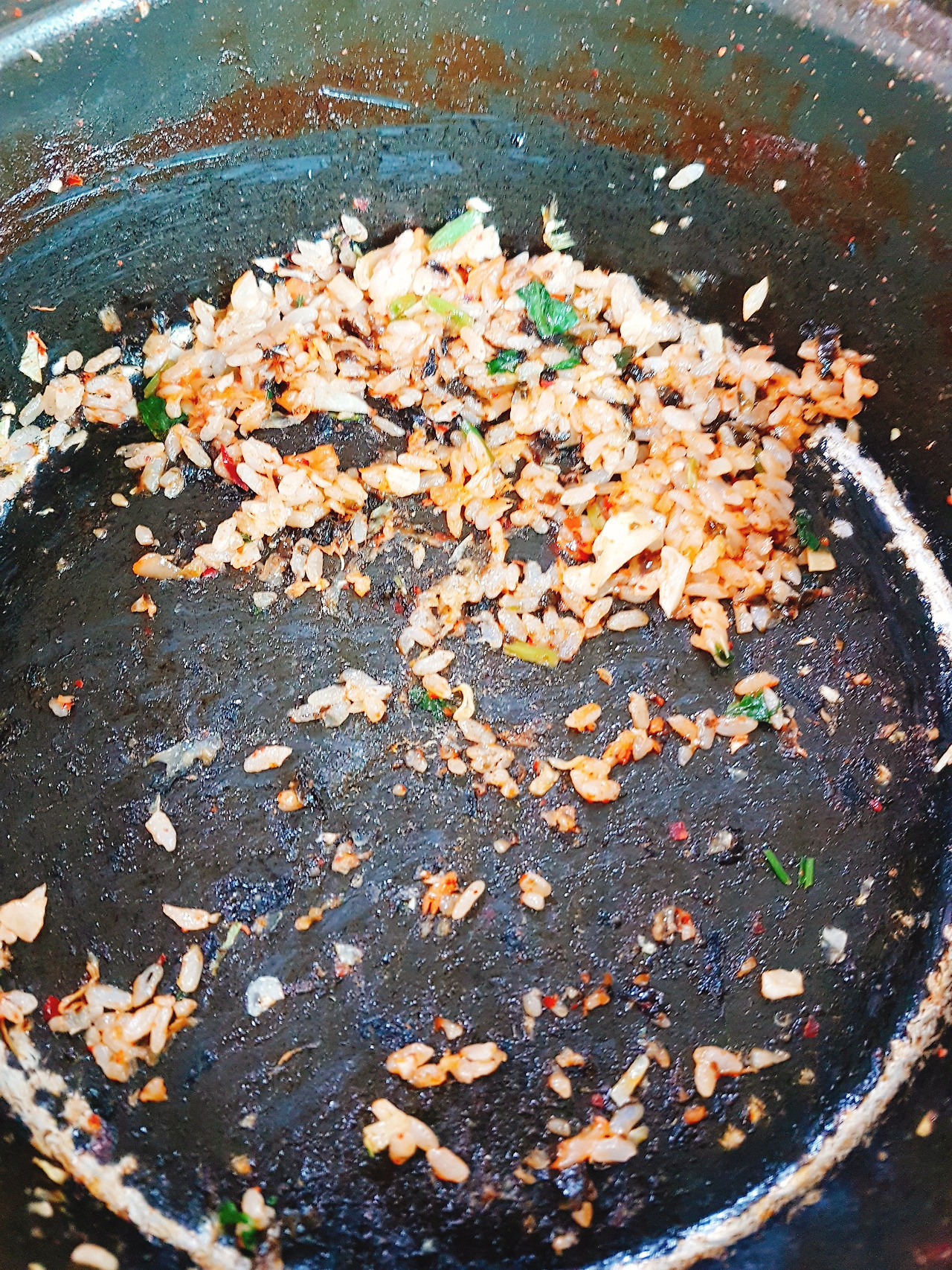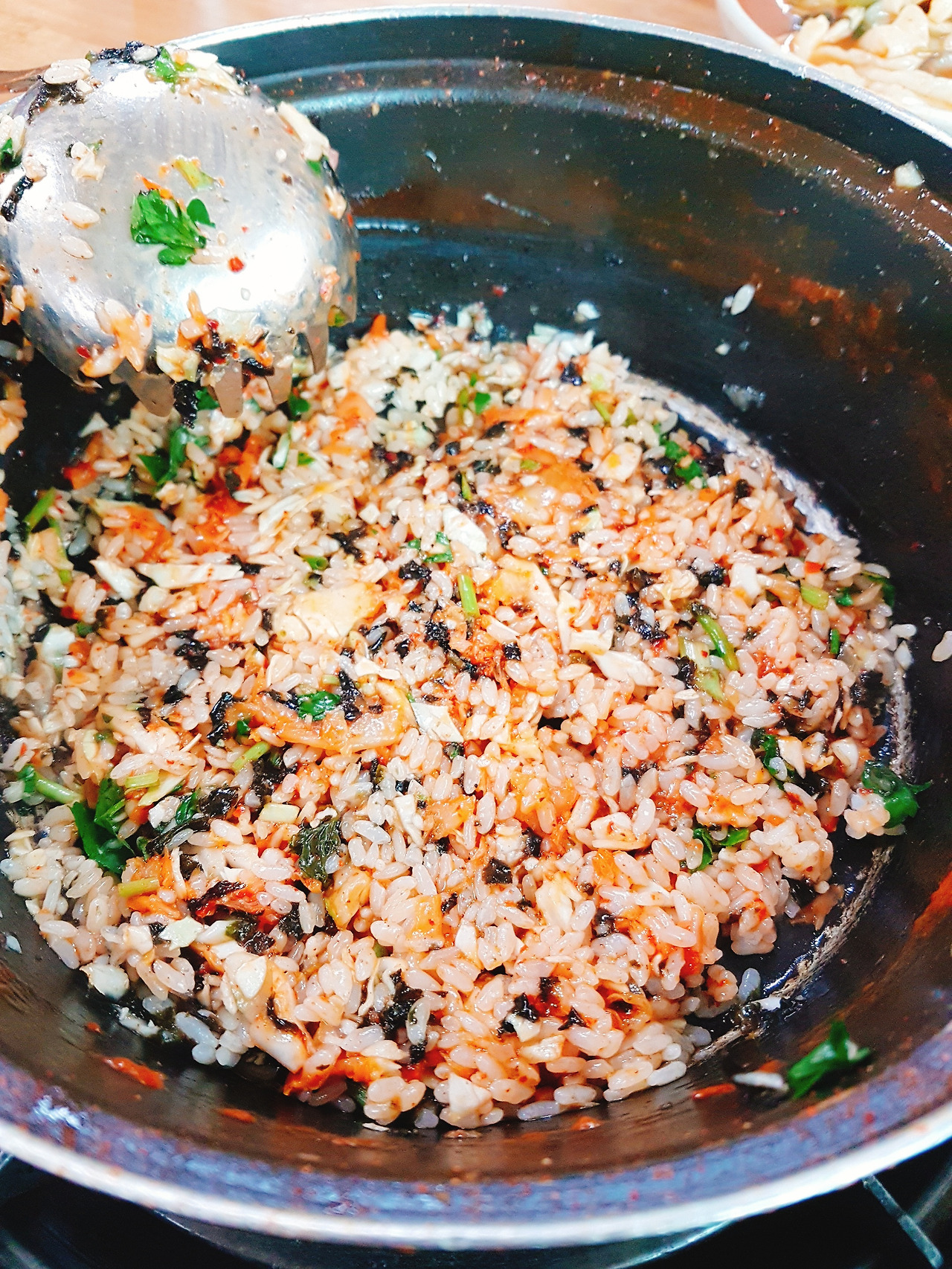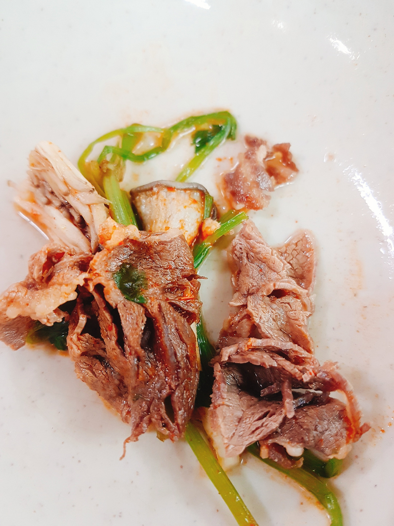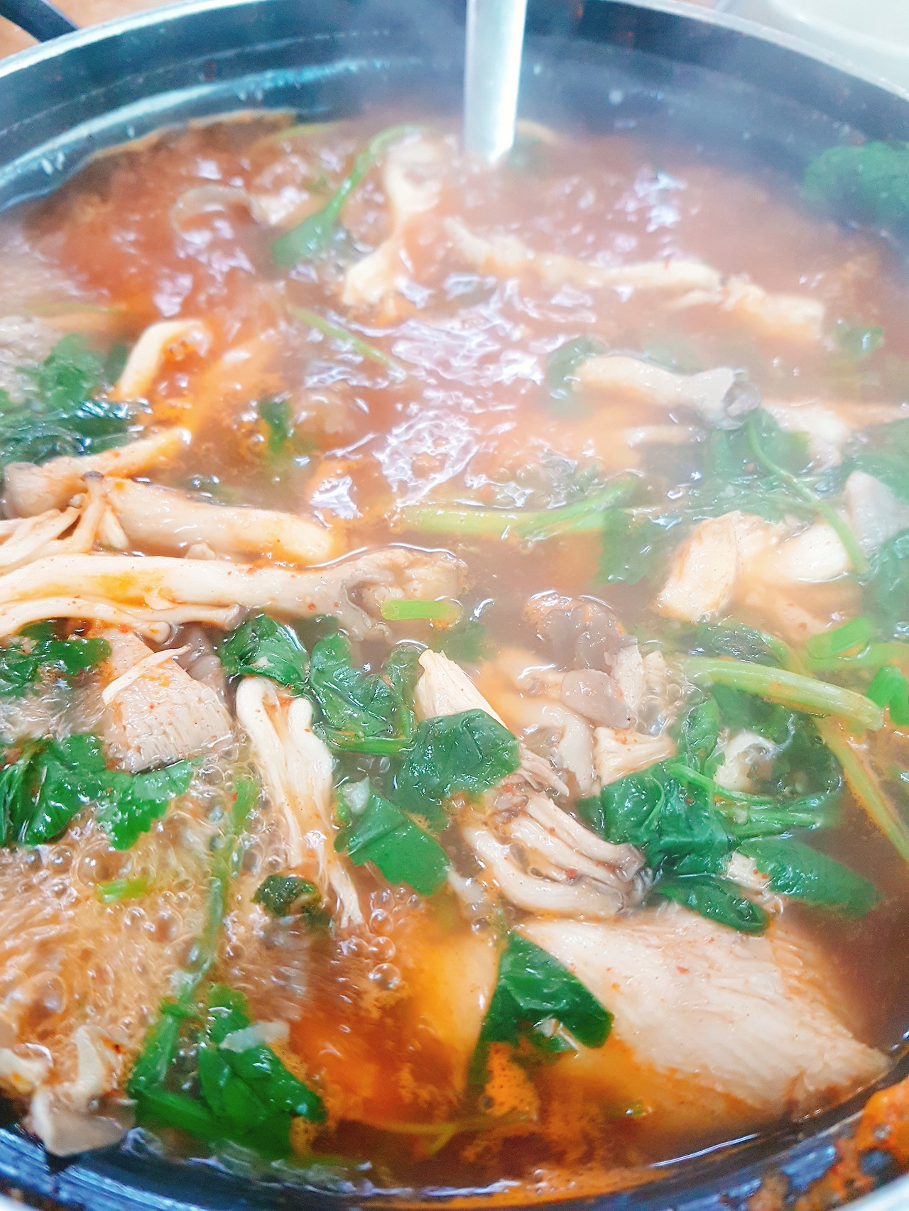 칼칼한 버섯국물의 칼국수, 거기에 적당한 샤브샤브 그리고 면빨이 굵은 칼국수 그리고 밥을 볶아먹는다.