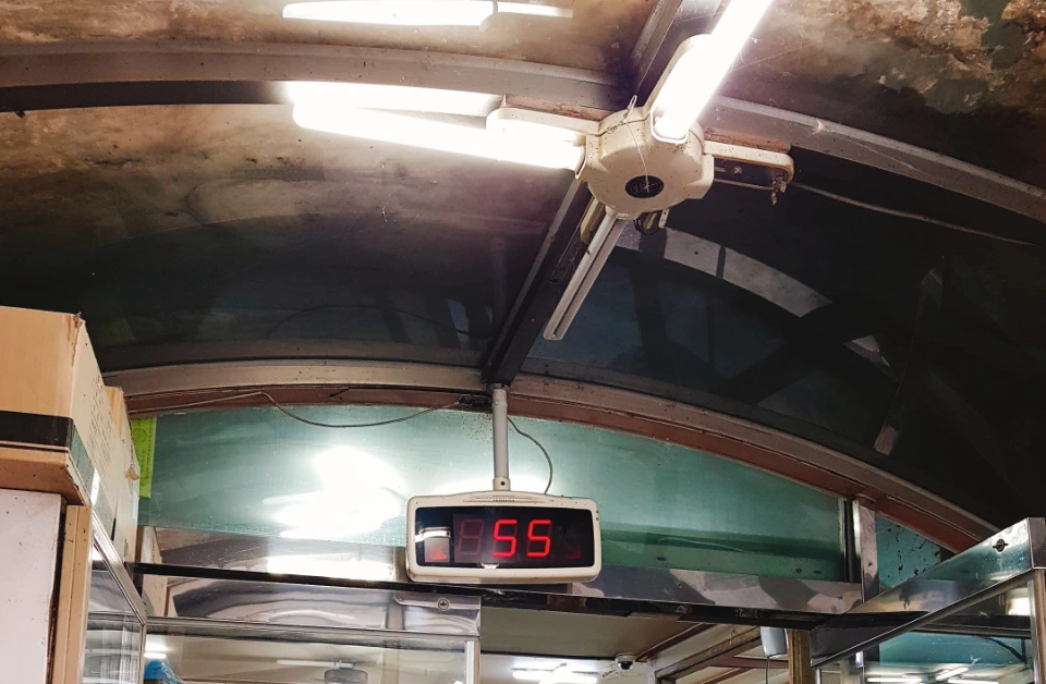 국수를 뽑고 있고 그 옆엔 번호표 기계가