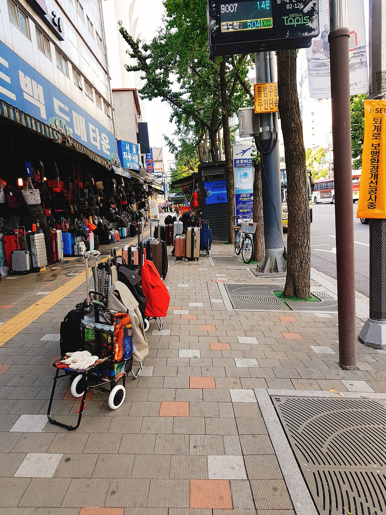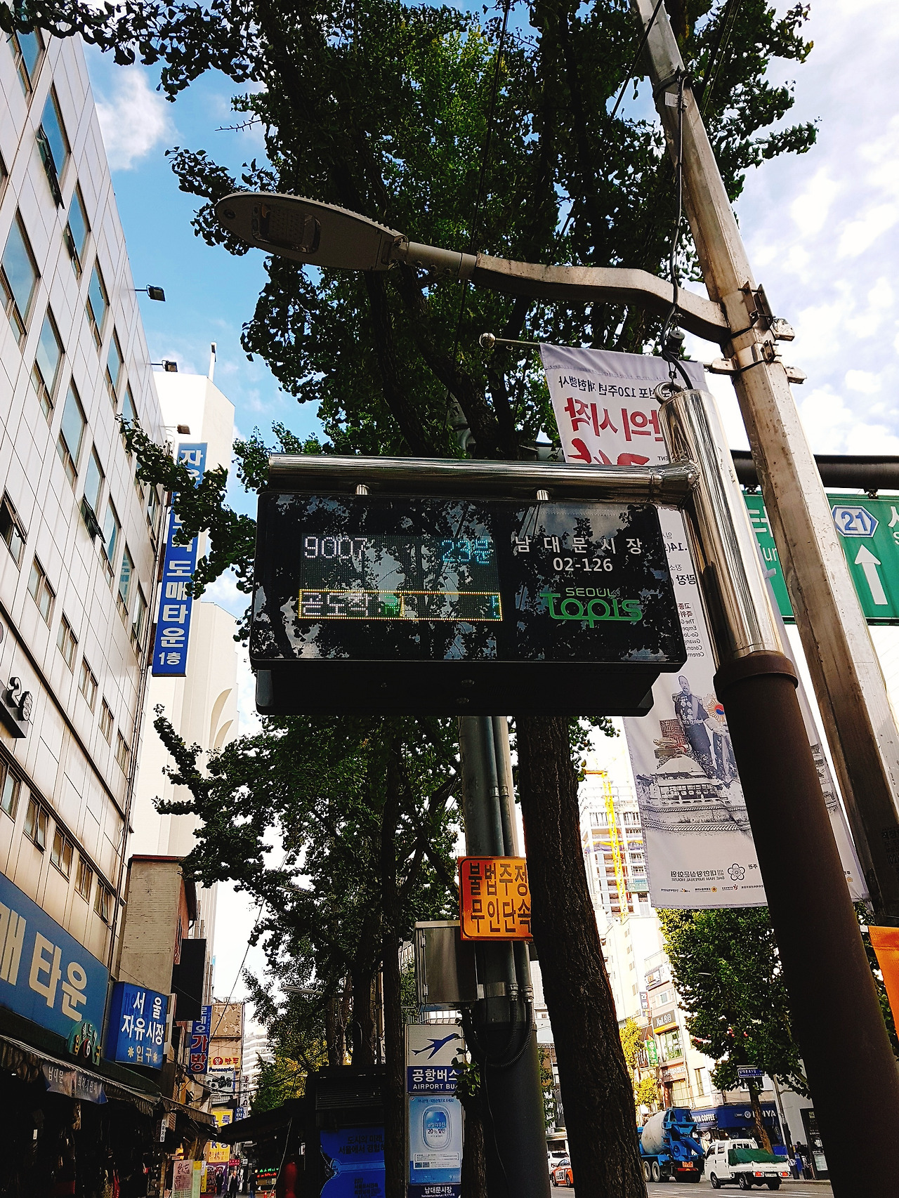 남대문 가방 가개 앞에서 9007버스를 기다린다.