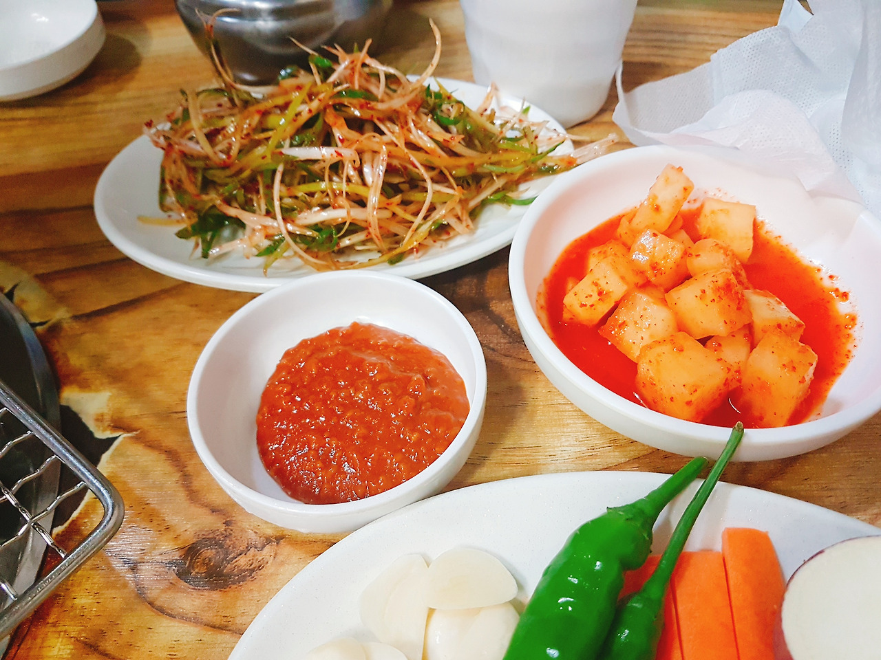 된장찌게를 못찍어 아숩다. 공기밥에 목고기에 된장찌게 배불리 먹었다.