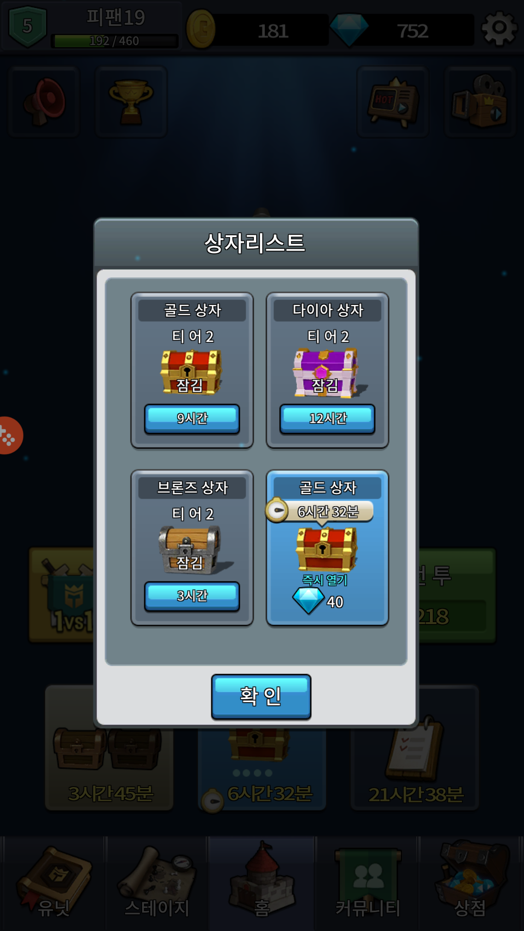 보물상자와 미션, 보물상자는 시간과 획득으로