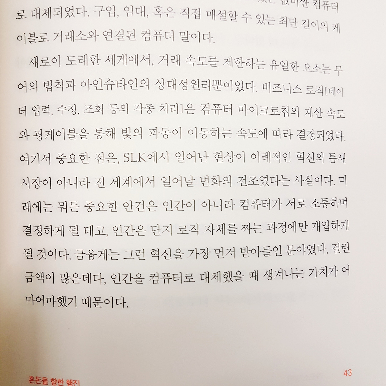 금융계는 그런 혁신을 가장 먼저 받아들인 분야였다. 걸린 금액이 많은데다, 인간을 컴퓨터로 대체했을 때 생겨나는 가치가 어마어마했기 때문이다.