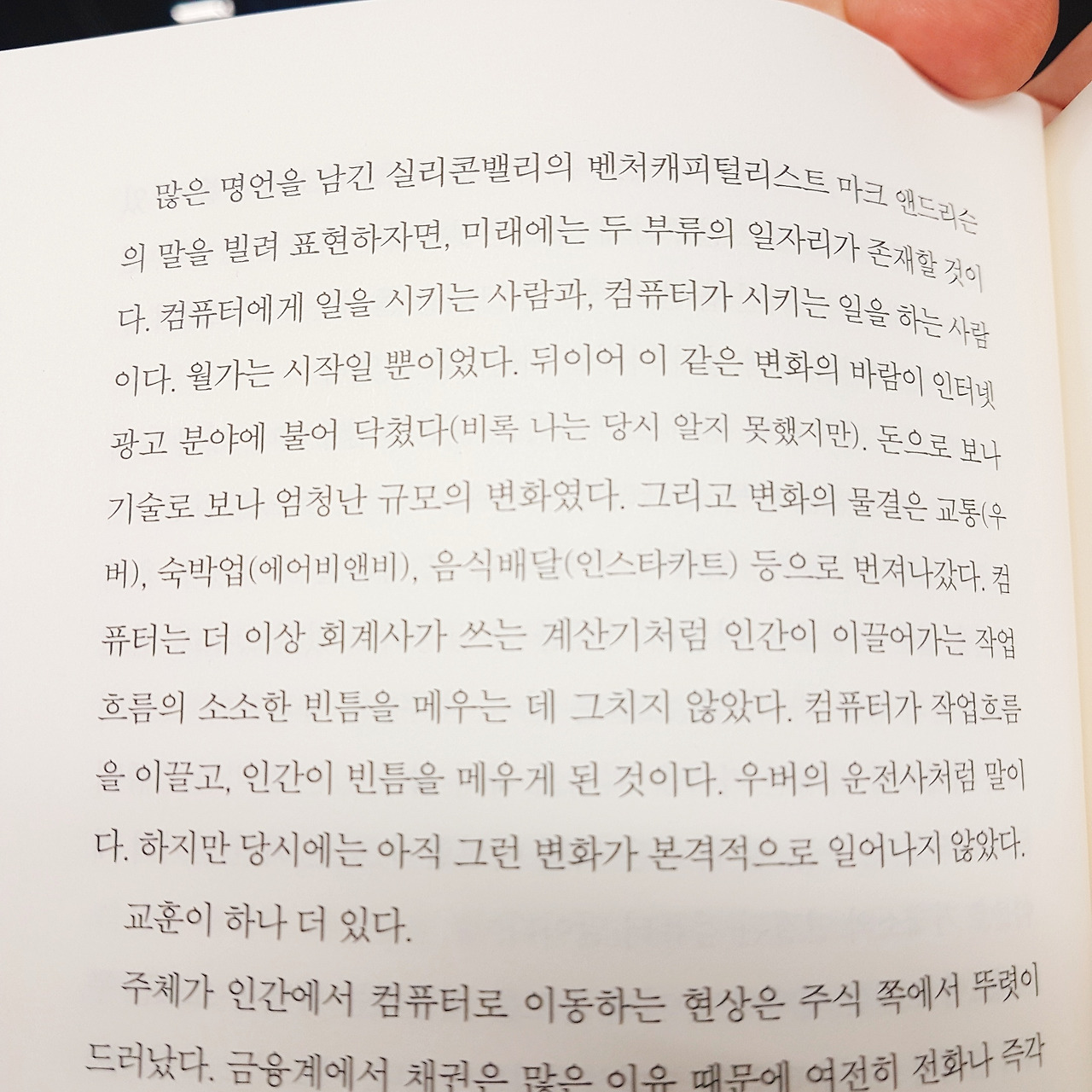 골드만삭스 금융에서 일을 시작한 저자, 그의 글은 개발자스타일이 아니며 자유분방하다. 트랜드한 글쓰기, 하지만 이런류의 글의 반복은 결국 식상함으로 돌아서개 된다. 그래서 이야기꺼리가 그의 글 됨됨이를 살려준다.