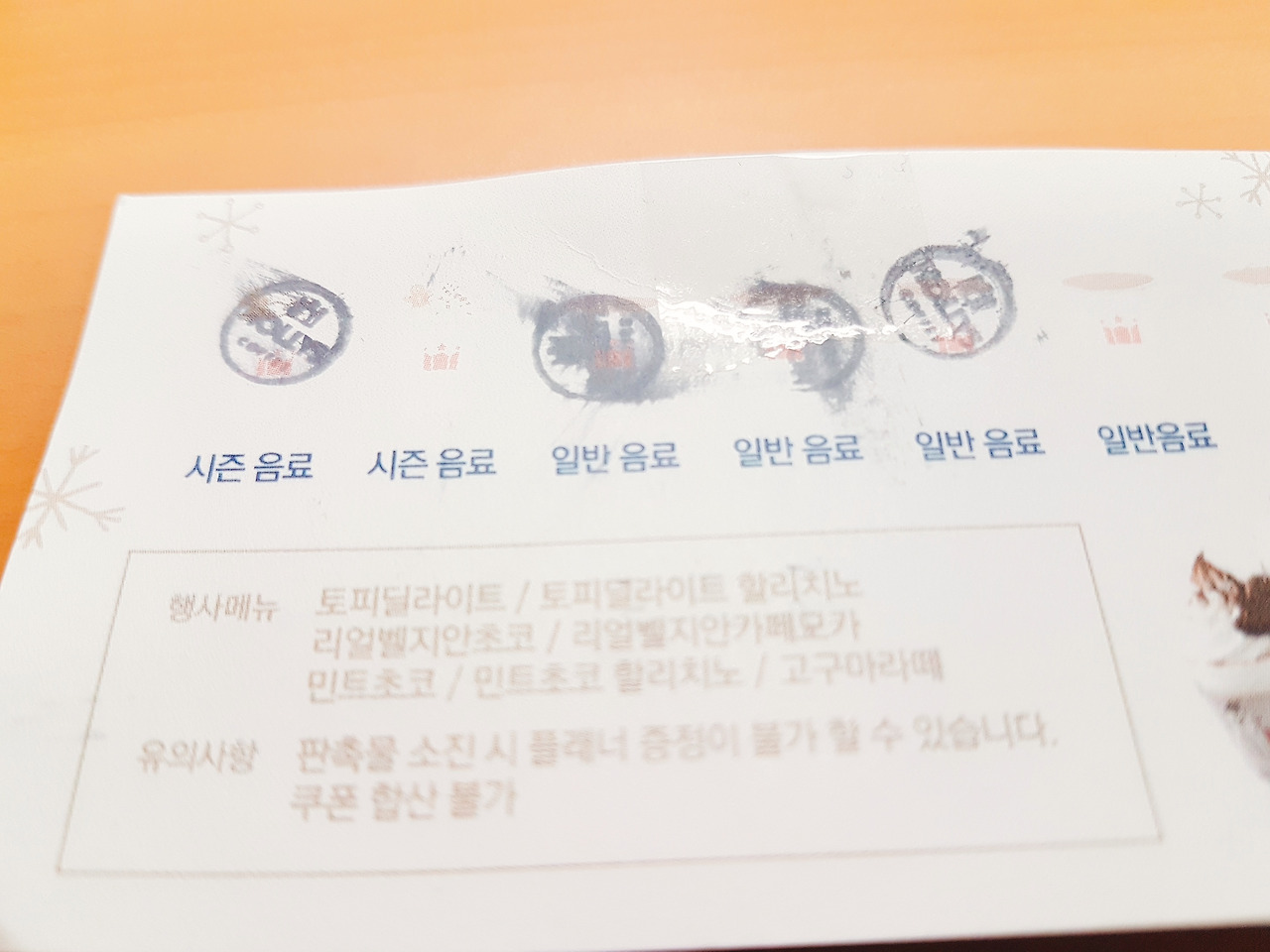 시즌음료 2잔 + 일반음료 5잔