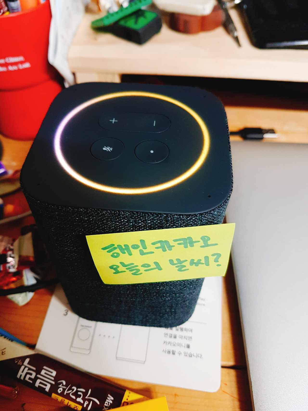 도전기에서 한번 언급했는데, 딸이름이 해인이다. 그래서 해인카카오라 불러도 어느정도 작동을 한다. 솔직히, 해인카카오로 불러주려고 구매한 것이다. 어쩌면 웨이크업을 위한 헤이카카오가 길게 느껴질수도 있다. 그래서 호출명령어의 선택권이 있는거 같다.