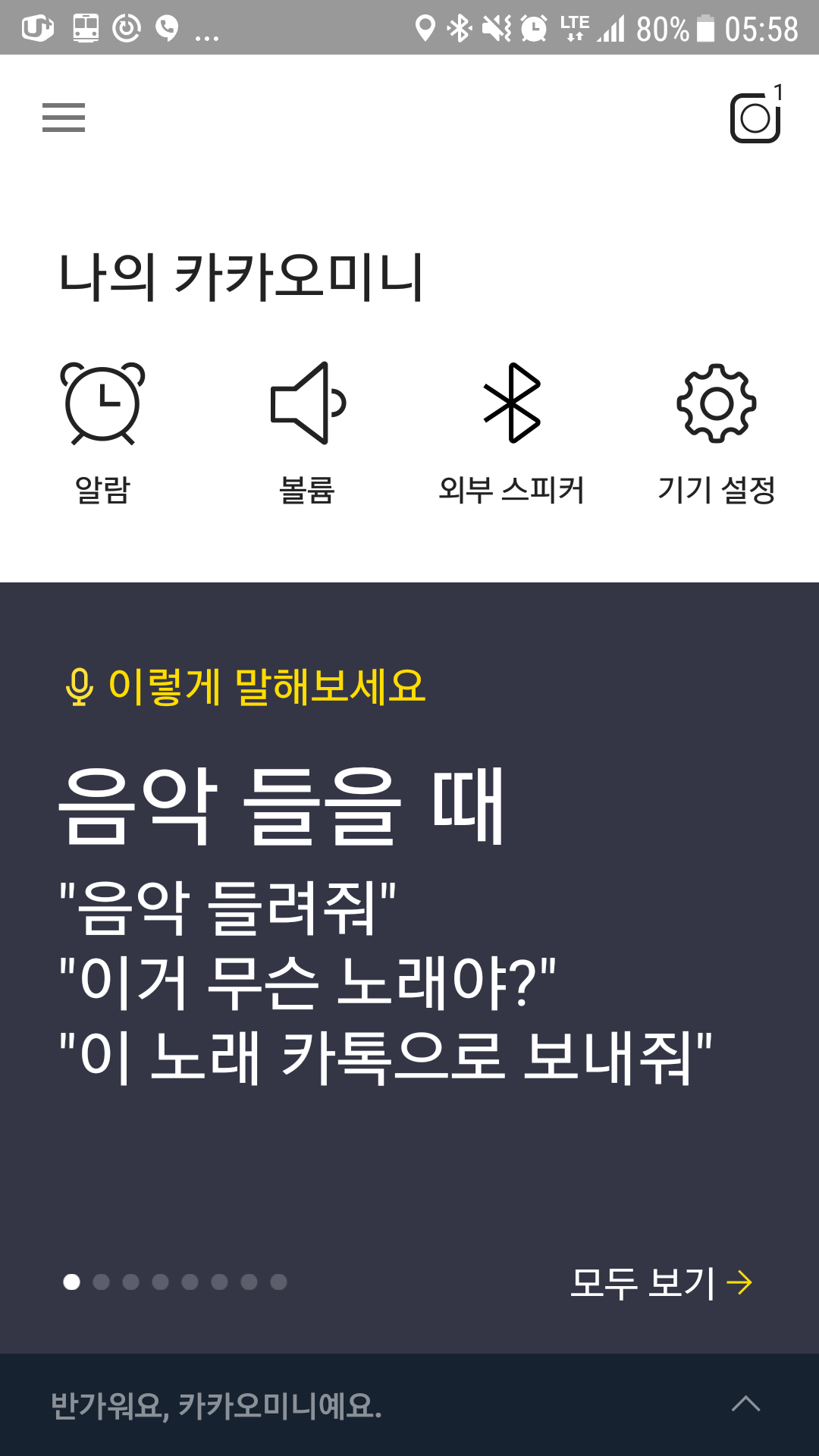 조금은 큰 목소리로 이야기를 해야했다. 새벽이라 너무 적은 소리로 헤이카카오를 찾으니 인식을 하지 못했다. 이 부분은 일단 좀더 사용해 봐야 할 것 같다.