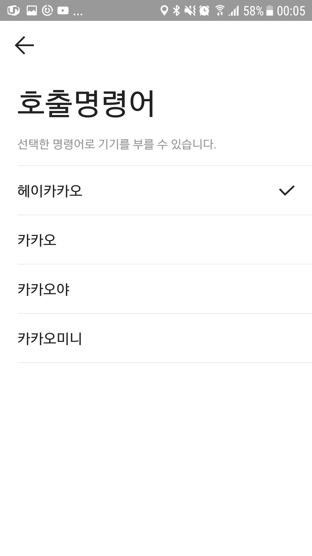 호출명령어는 헤이카카오, 카카오, 카카오야, 카카오미니 선택할 수도 있다.