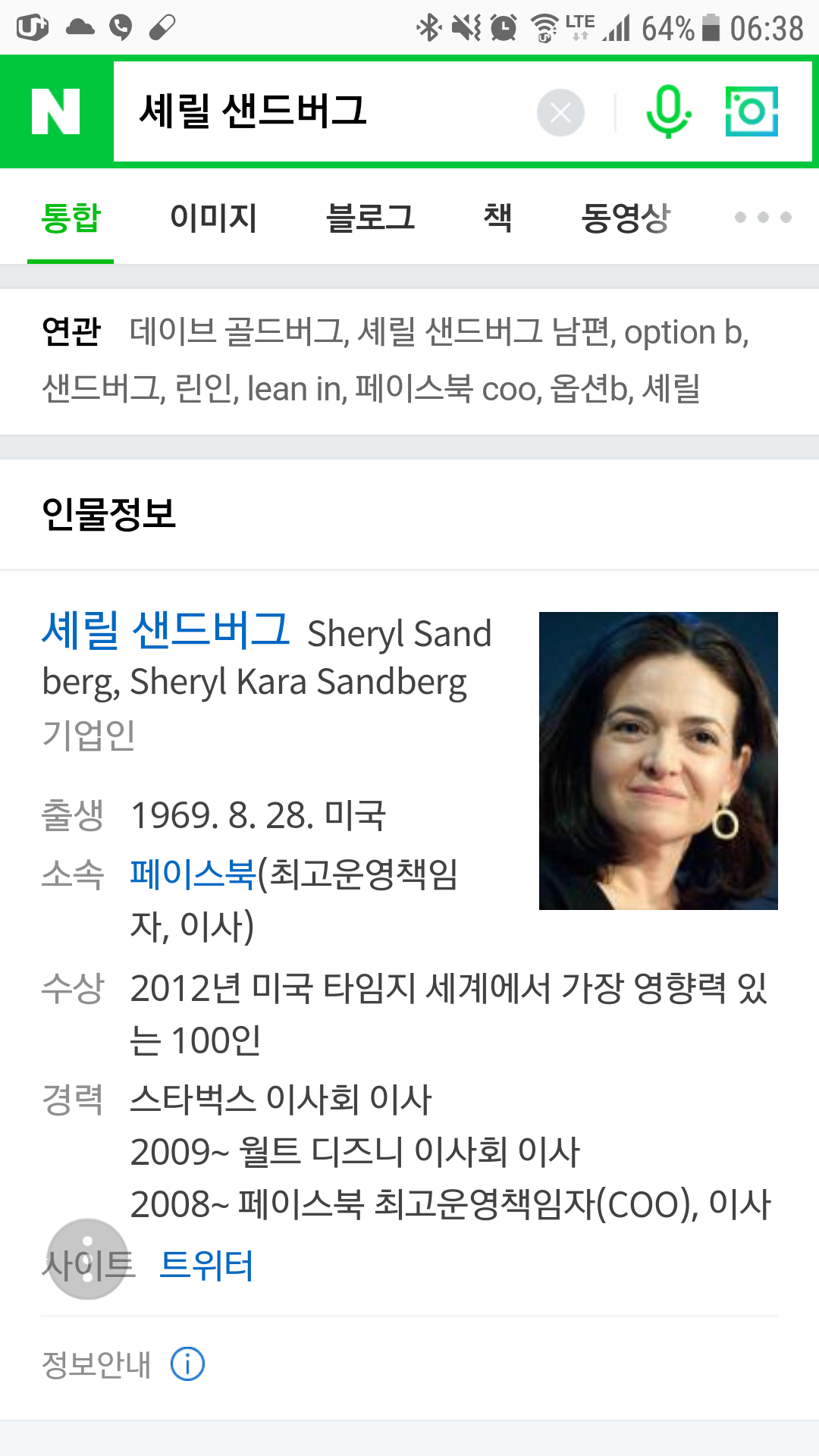 최근 카오스멍키 서두에 등장했던 페이스북의 셰릴 샌드버그를 또 만나다. 그 책에서의 잠깐 서두에 언급 된 그녀는 세계에서 영향력 있는 100인의 모습이였다.