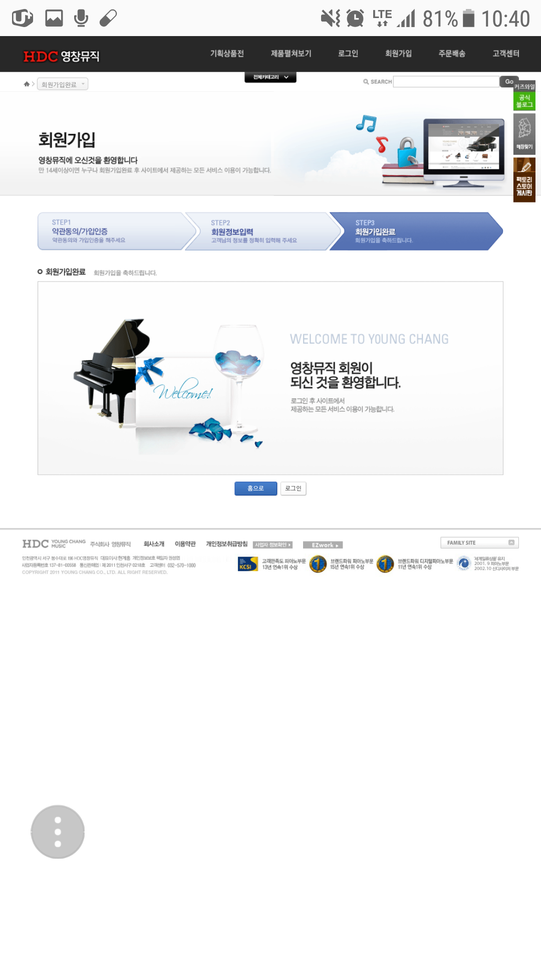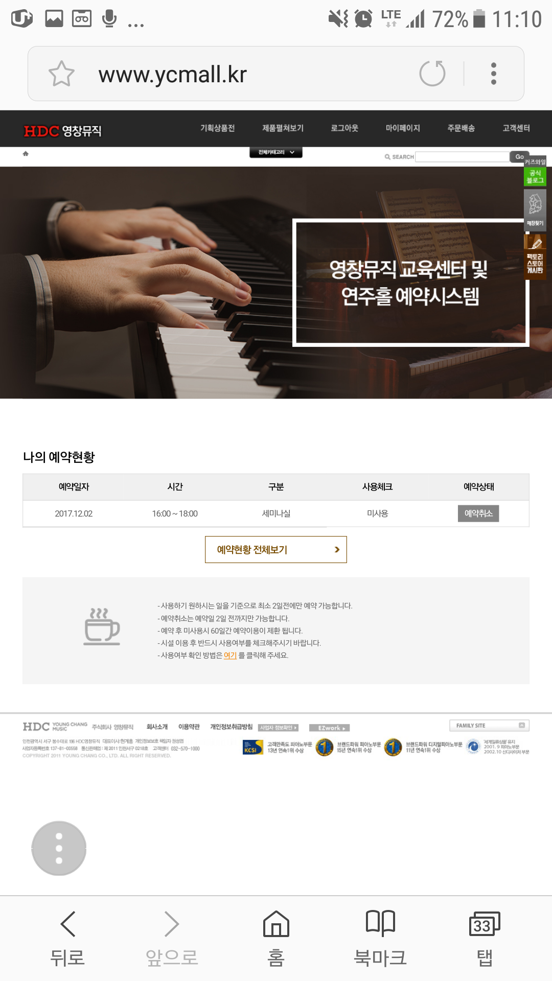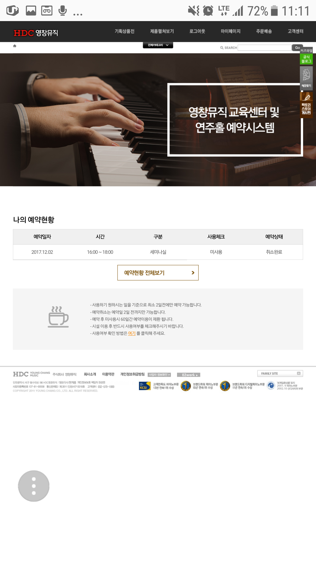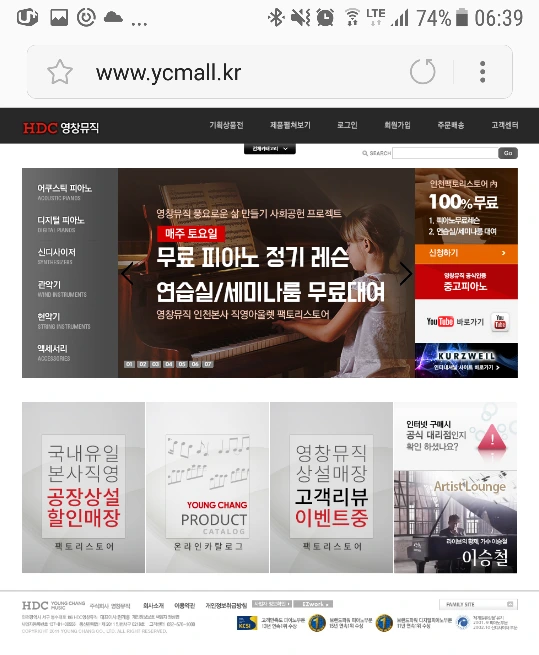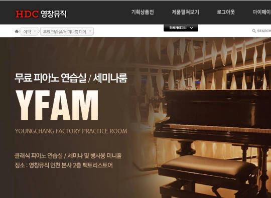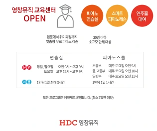 영창뮤직 메인페이지에 무료 피아노 정기레슨과 연습실/세미나룸 무료대여 서비스가 오픈되었다. 풍요로운 삶만들기 사회공헌 프로젝트라고 명명 되어있다.