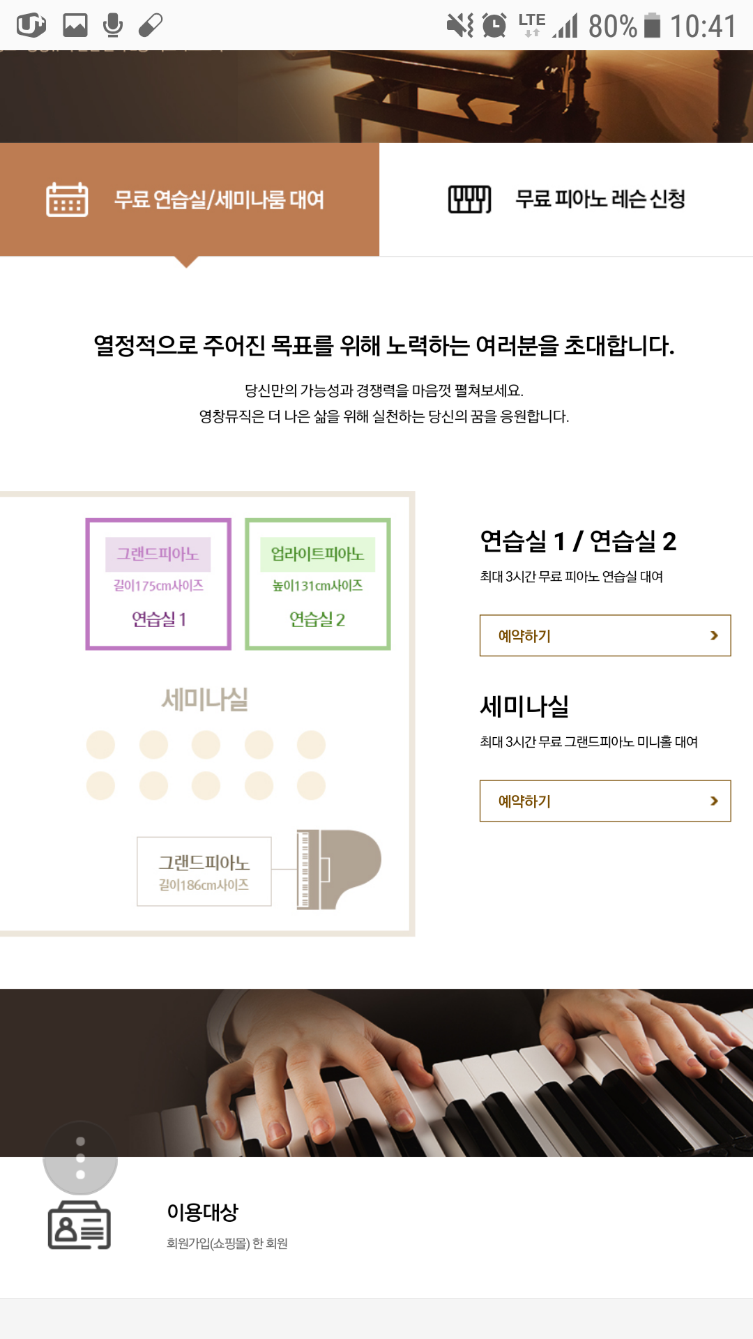 피아노연습실, 스마트 피아노레슨, 연주홀대여 서비스를 어제 피아노와 김치에서 언급했다.