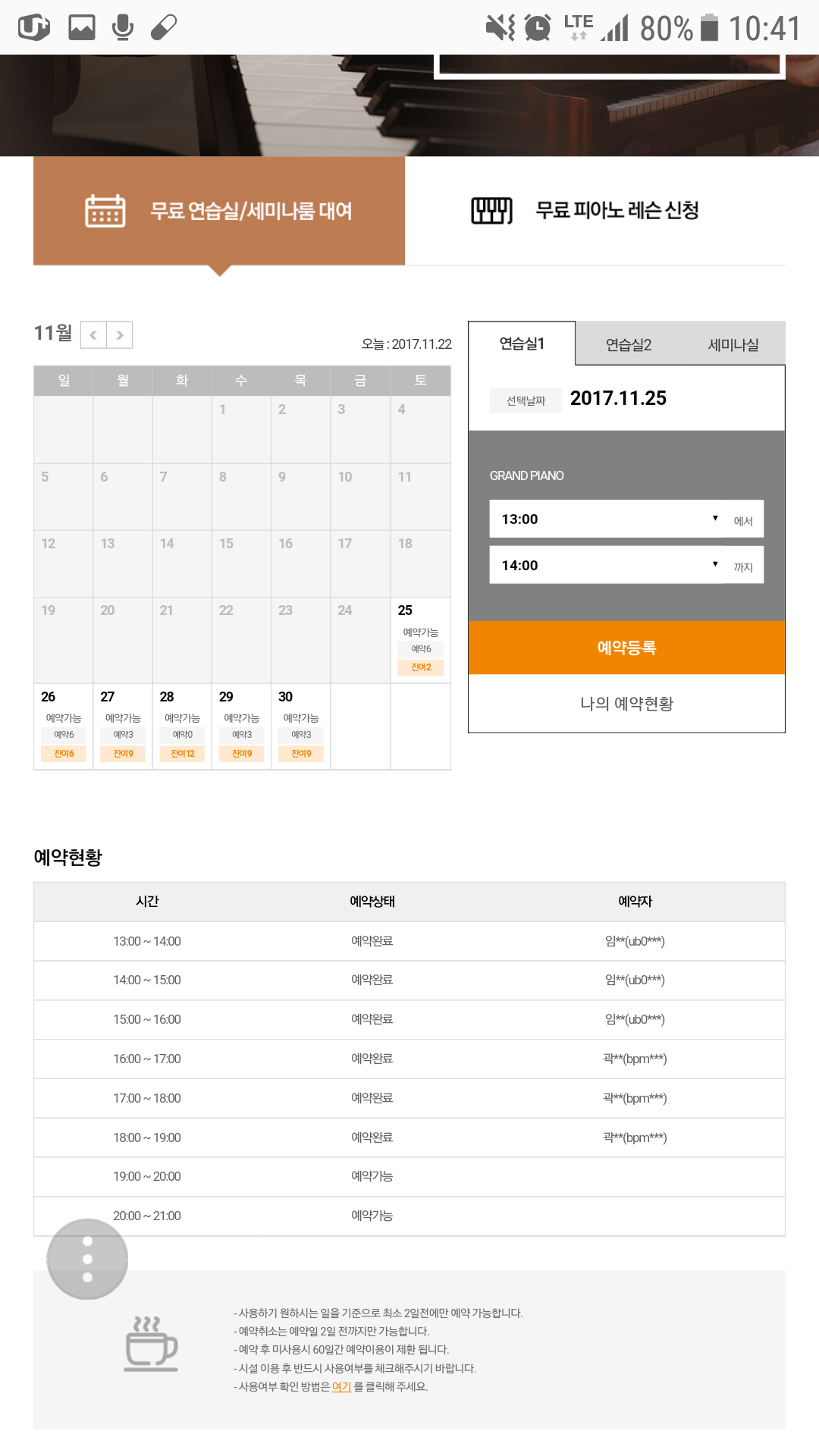 2.무료 연습실/세미나룸 대여에 들어가 본다.