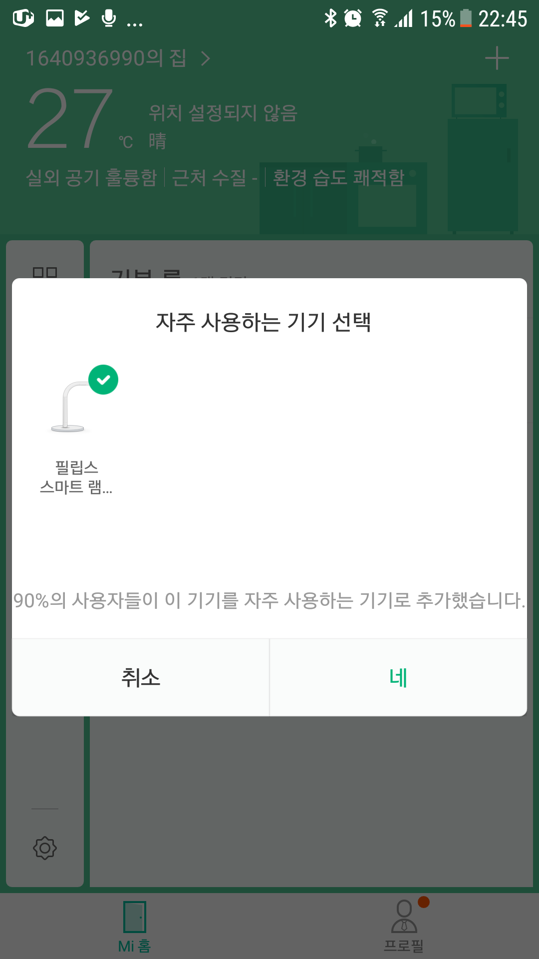 미홈을 통해 스탠드 밝기 조절이 가능하다.