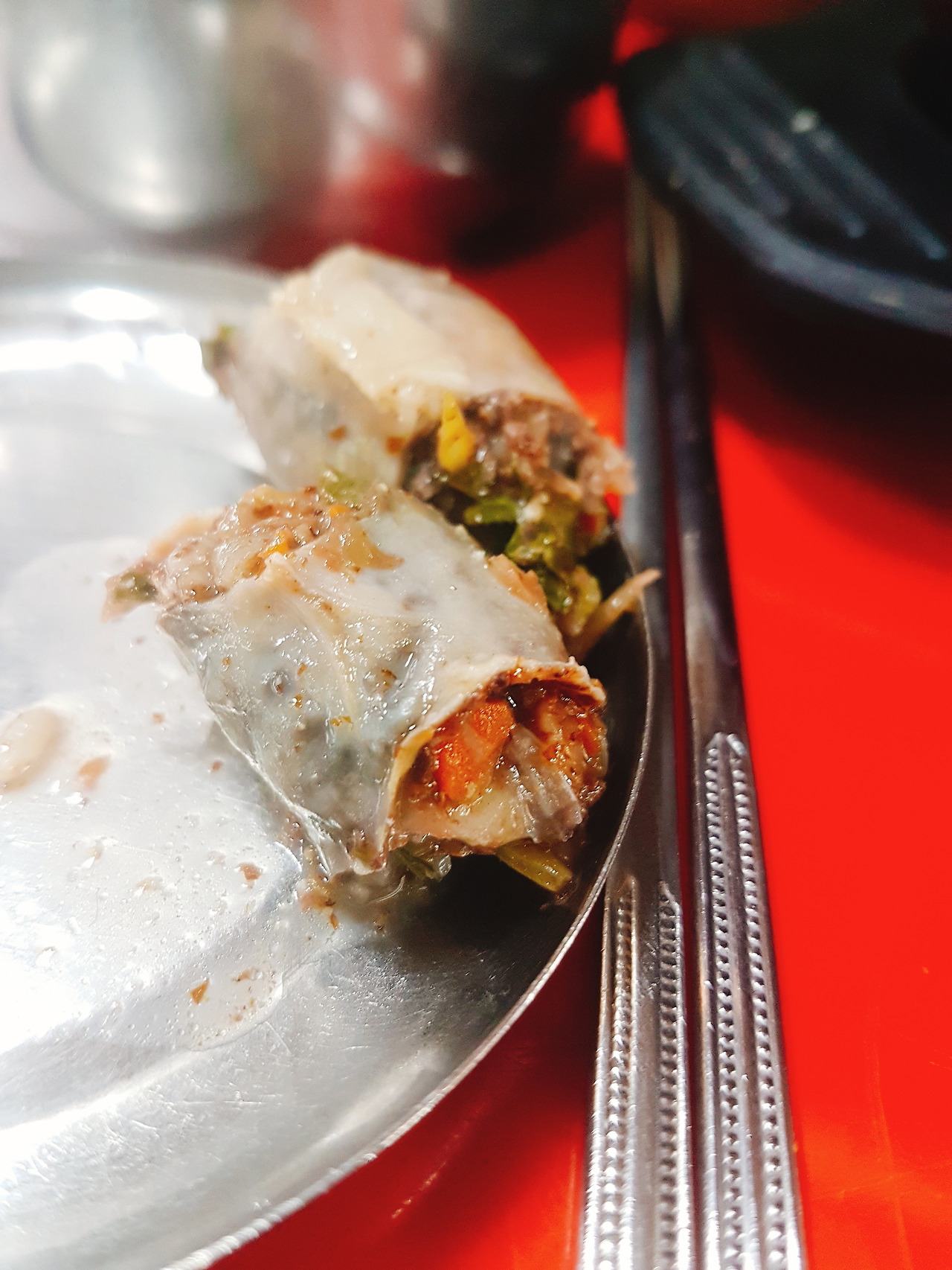 11시50분 거의 점심시간 피크에 왔다. 저녁때 몇전 왔는데 그때는 모임들로 가득찼는데, 오늘은 점심시감인데 날이 스산해서 그런지 조명이 어두워서 그런지 식당이 가득차서 저녁시간때와 같은느낌이다. 손님이 가득 가득, 그나마 한자리 남아서 쨉싸게 앉았다. 주로 점심이라 전골보다는 순대국밥 손님들이라 회전율이 높다.