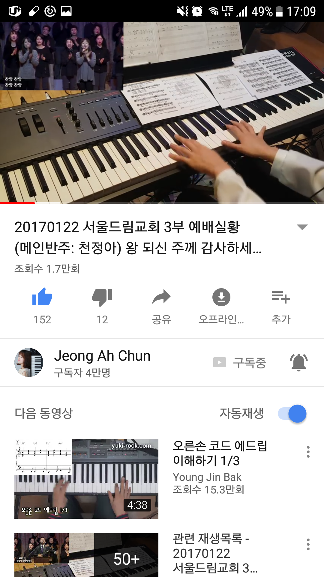 신디사이저를 기반으로 검색을 하다보니, 예배실황 영상을 찾게 되었다.