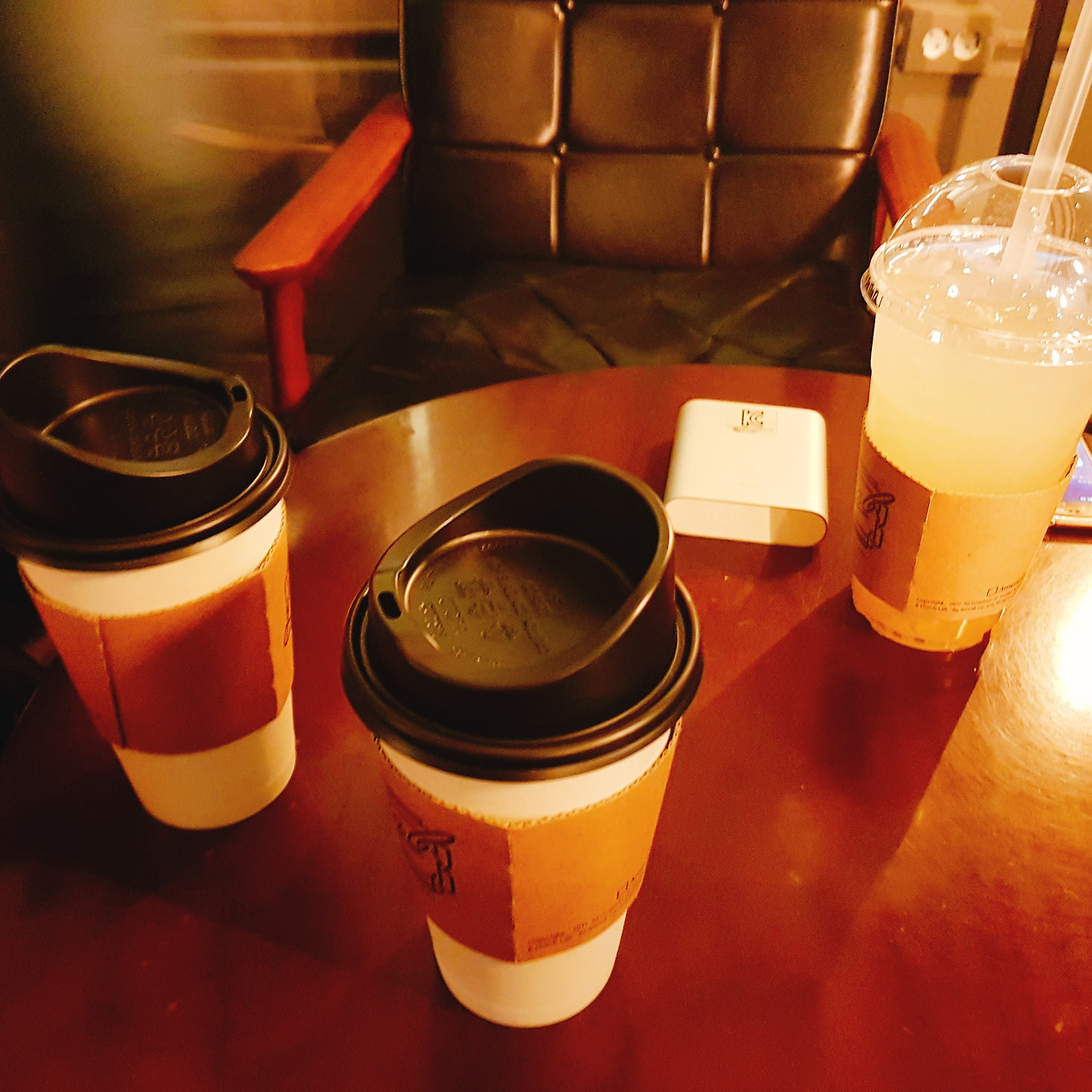 40대 남정네 세명이 커피솦에서 수다를 떤다.